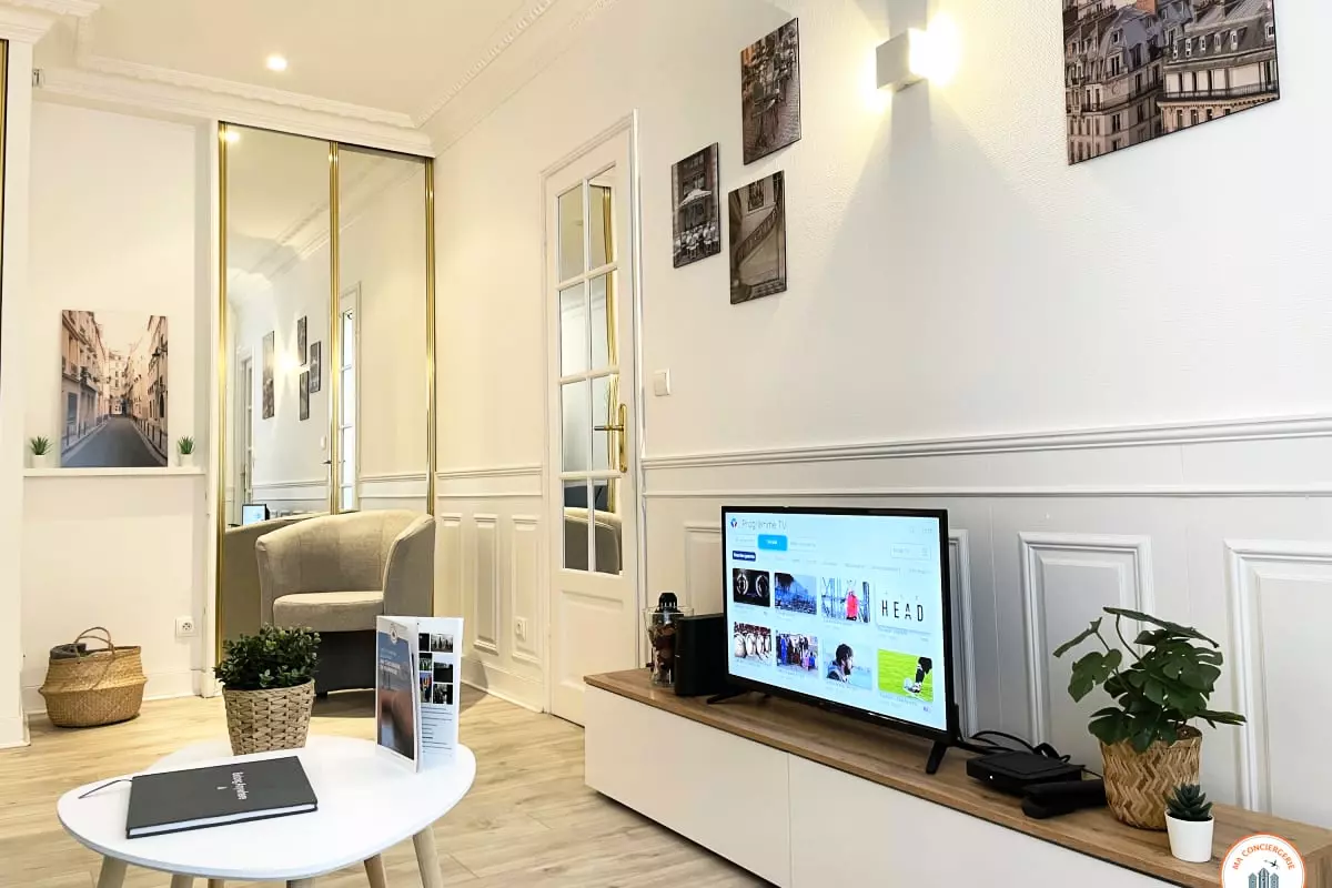 - un bel espace salon équipé d'une Smart TV où vous pourrez regarder vos séries préférez (accès Netflix, Prime Vidéo, YouTube si vous disposez d'un compte).