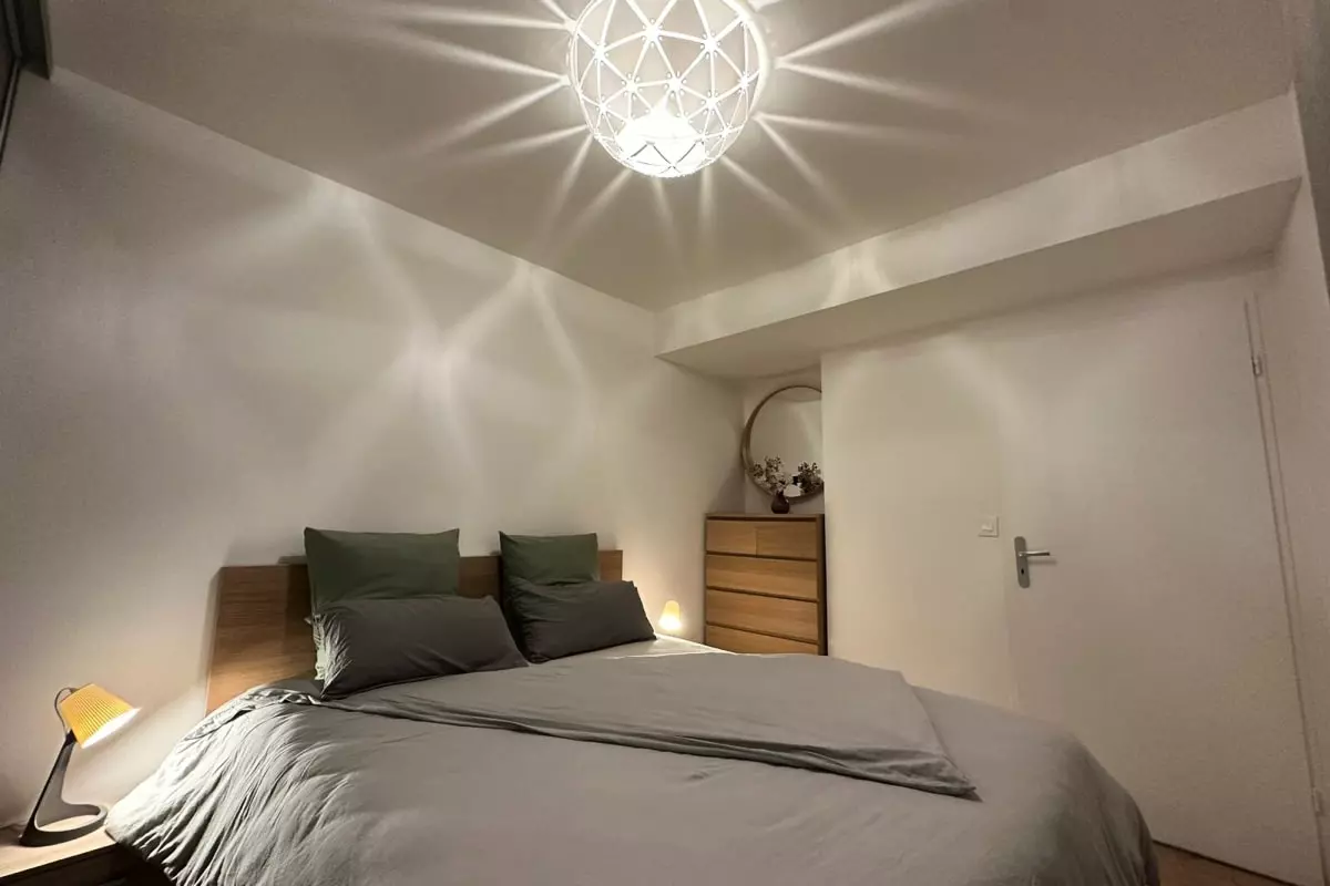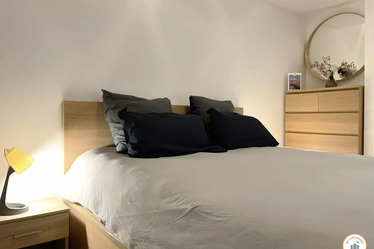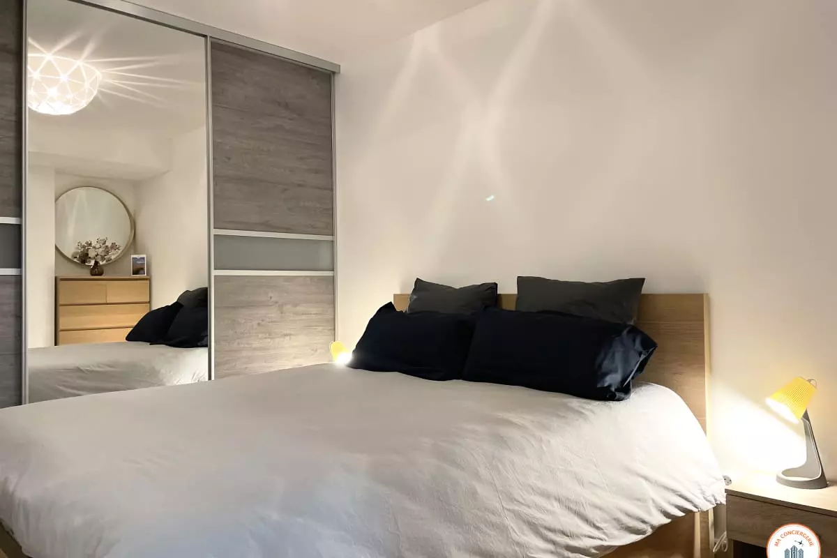 - Une chambre équipée d'un lit Queen size (160x200cm) et d'un dressing.