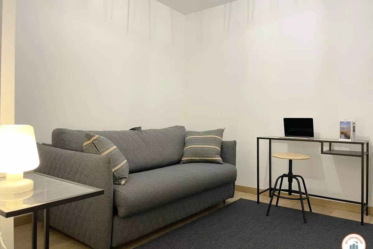 - Une seconde chambre pouvant faire également office de bureau pour les voyageurs souhaitant faire du télétravail. La chambre est équipée d'un canapé convertible haut de gamme en 140 x 200cm.