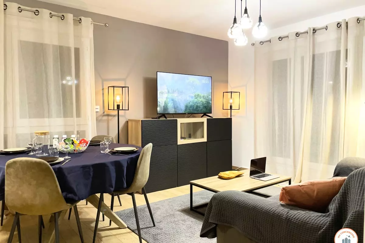 Situé dans une résidence haut de gamme, sa proximité avec l'hypercentre en fait un endroit idéal pour profiter de Caen, de ses commerces et de son port de plaisance, tout en étant au calme. Ce superbe appartement est idéal pour un séjour professionnel, en couple ou entre ami(e)s.