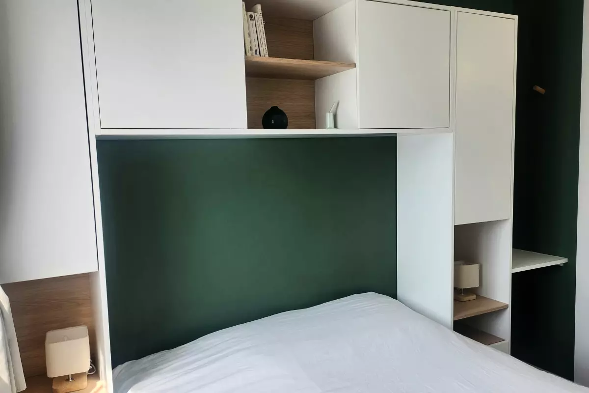 - une chambre avec un lit double en 160 et un petit espace de télétravail ;