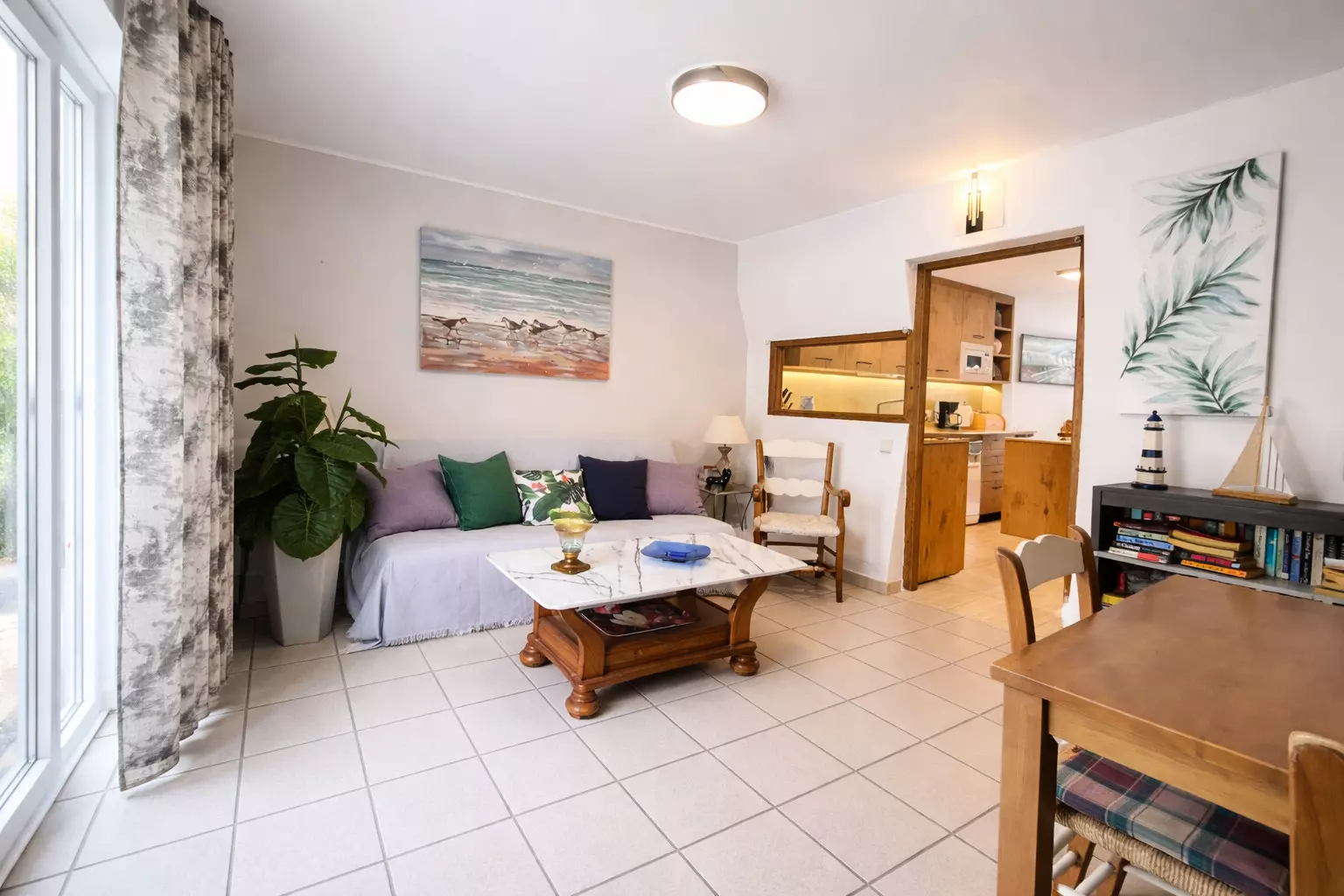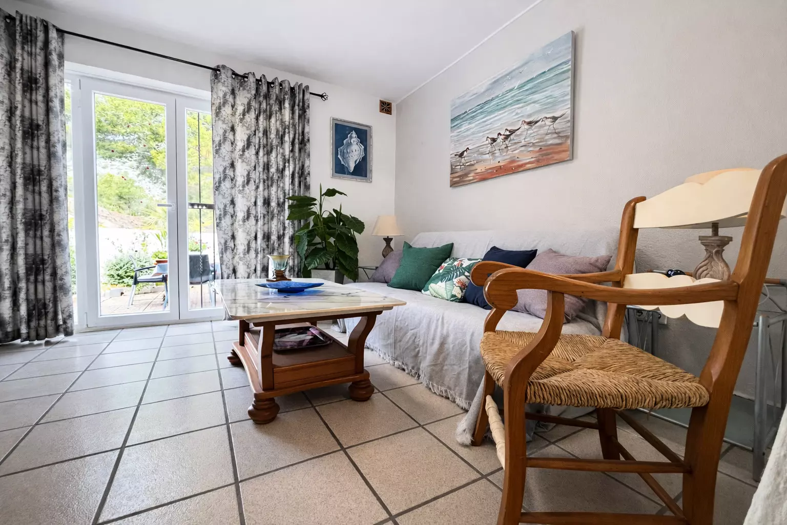 Ensuite, un autre salon très confortable, avec accès à la terrasse arrière.
