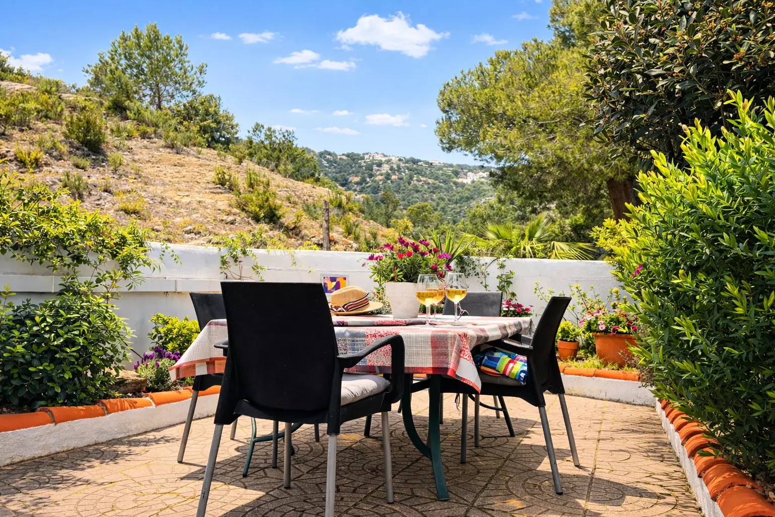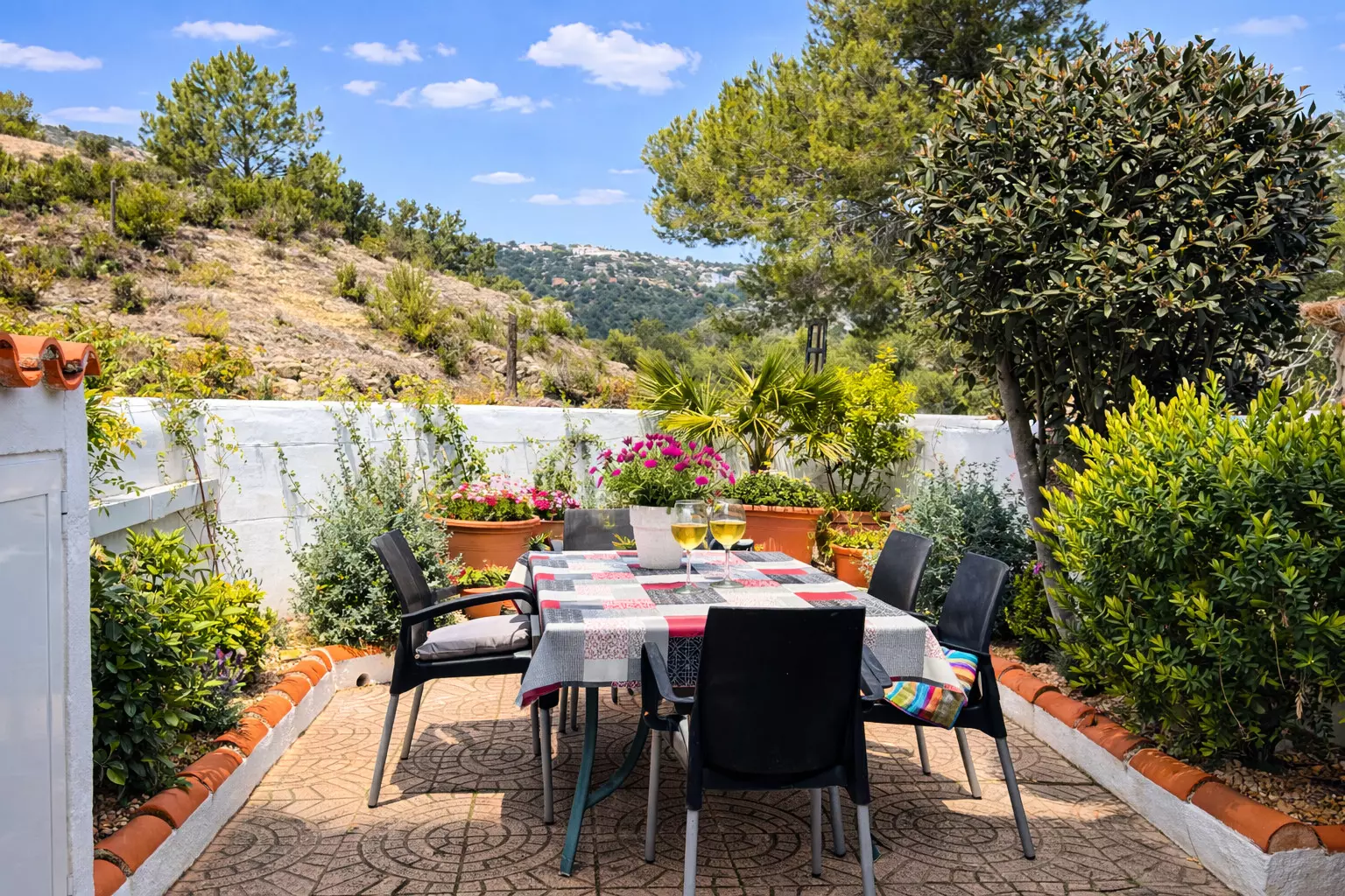 La deuxième terrasse donne sur l'arrière de la maison, vers la montagne. Il est très frais et idéal pour le petit-déjeuner, le déjeuner ou le dîner en famille pendant les mois d'été, en toute intimité.