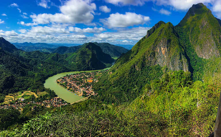 Située sur les rives de la paisible rivière Nam Ou, Nong Khiaw est une charmante ville encerclée par les plus incroyables montagnes karstiques du nord du Laos. Votre randonnée suivra un petit chemin jusqu’au sommet de la montagne, à travers la beauté de la nature. Si vous vous sentez l’âme d’un aventurier, vous pourrez grimper à votre rythme une colline boisée et luxuriante, pourvue de bancs en bambou, avant de poursuivre votre ascension jusqu’aux sommets. Vous serez récompensés au sommet de la montagne par un panorama sur Nong Khiaw et la rivière Nam Ou, qui serpente entre les montagnes. Après une pause à la sala, vous redescendrez vers la ville.