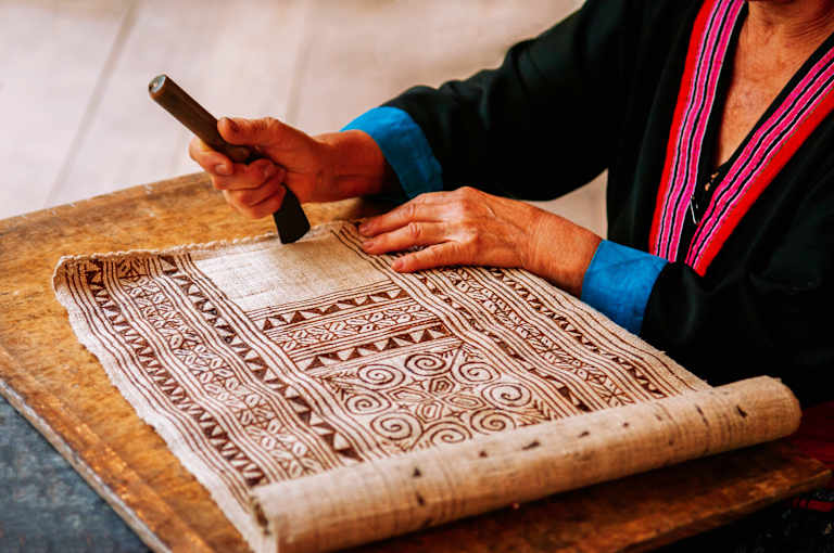 Retour à Luang Prabang et visite du centre de tissage d’Ock Pop Tok: Cet atelier est un bel endroit à visiter si vous vous intéressez à l’artisanat lao traditionnel. Vous découvrirez les secrets du beau textile lao grâce à un guide local qui vous expliquera chaque étape du tissage de la soie et de la teinture du tissu. Il vous parlera également des batiks et du tissage du bambou, mais ce sera en observant les artisans dans l’atelier que vous en apprendrez le plus. Enfin, vous aurez du temps pour vous promener dans le magnifique jardin tropical où vous admirerez la vue imprenable sur le Mékong et les montagnes (Remarque : l’activité commence vers 16h30 et se termine autour de 18h).