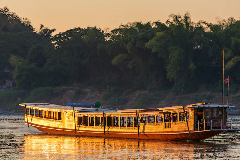Rencontre avec votre guide à l’hôtel. Vous quitterez Pakbeng pour vous rendre à Luang Prabang sur un bateau qui vous fera traverser le paysage magnifique et très changeant autour du Mékong qui coule au bas d’une vallée escarpée. À travers la forêt tropicale qui envahit les rives, vous apercevrez un village et ses habitants.