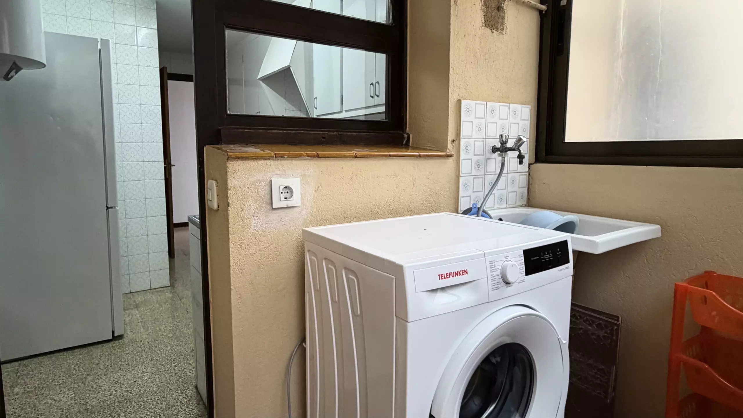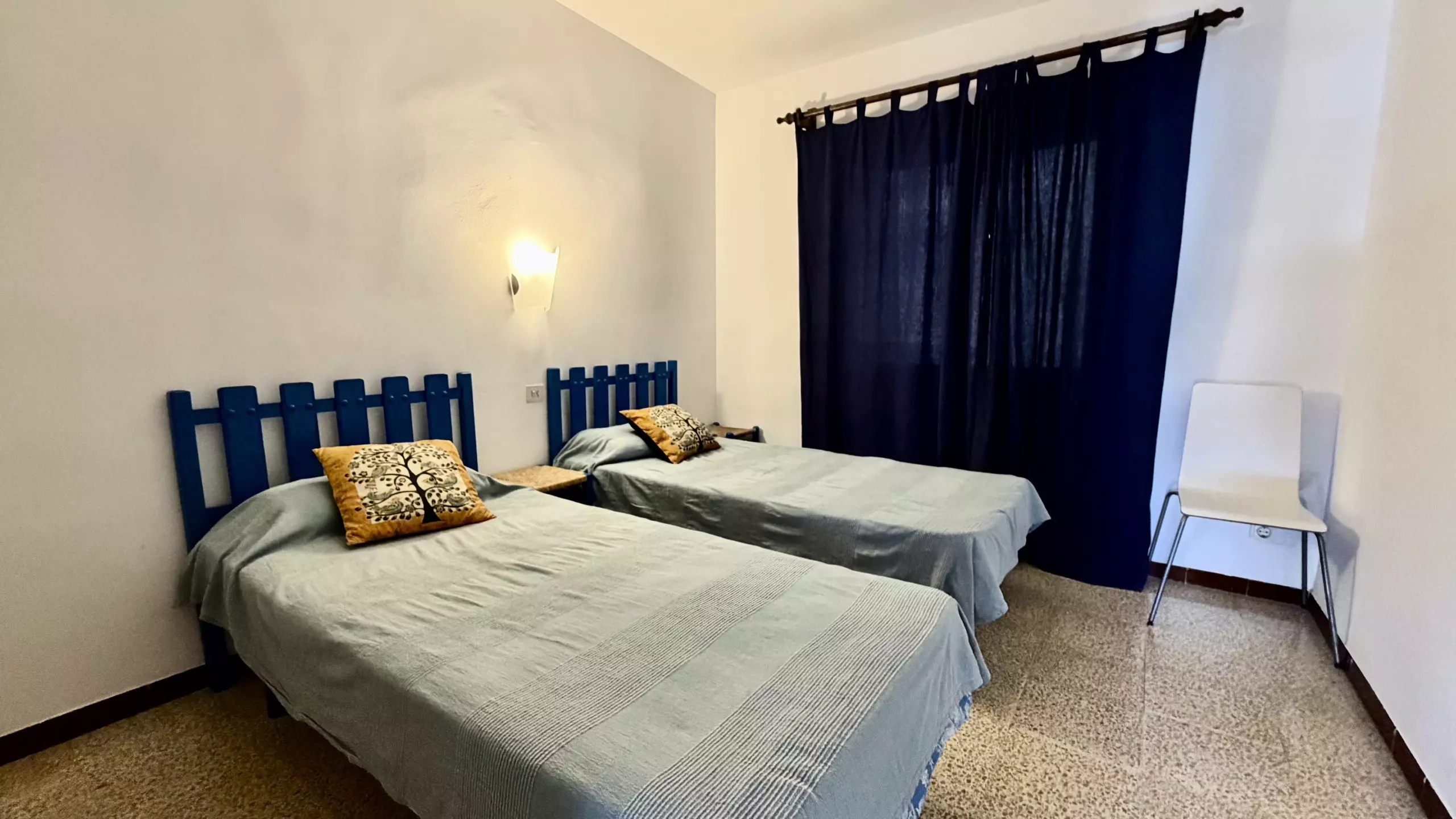 L'appartement dispose de 3 chambres équipées de 5 lits : 1 lit double et 4 lits individuels, idéal pour les groupes recherchant de la flexibilité pour le repos. Il comprend une salle de bain complète avec baignoire, parfaite pour se détendre après une journée à la plage.