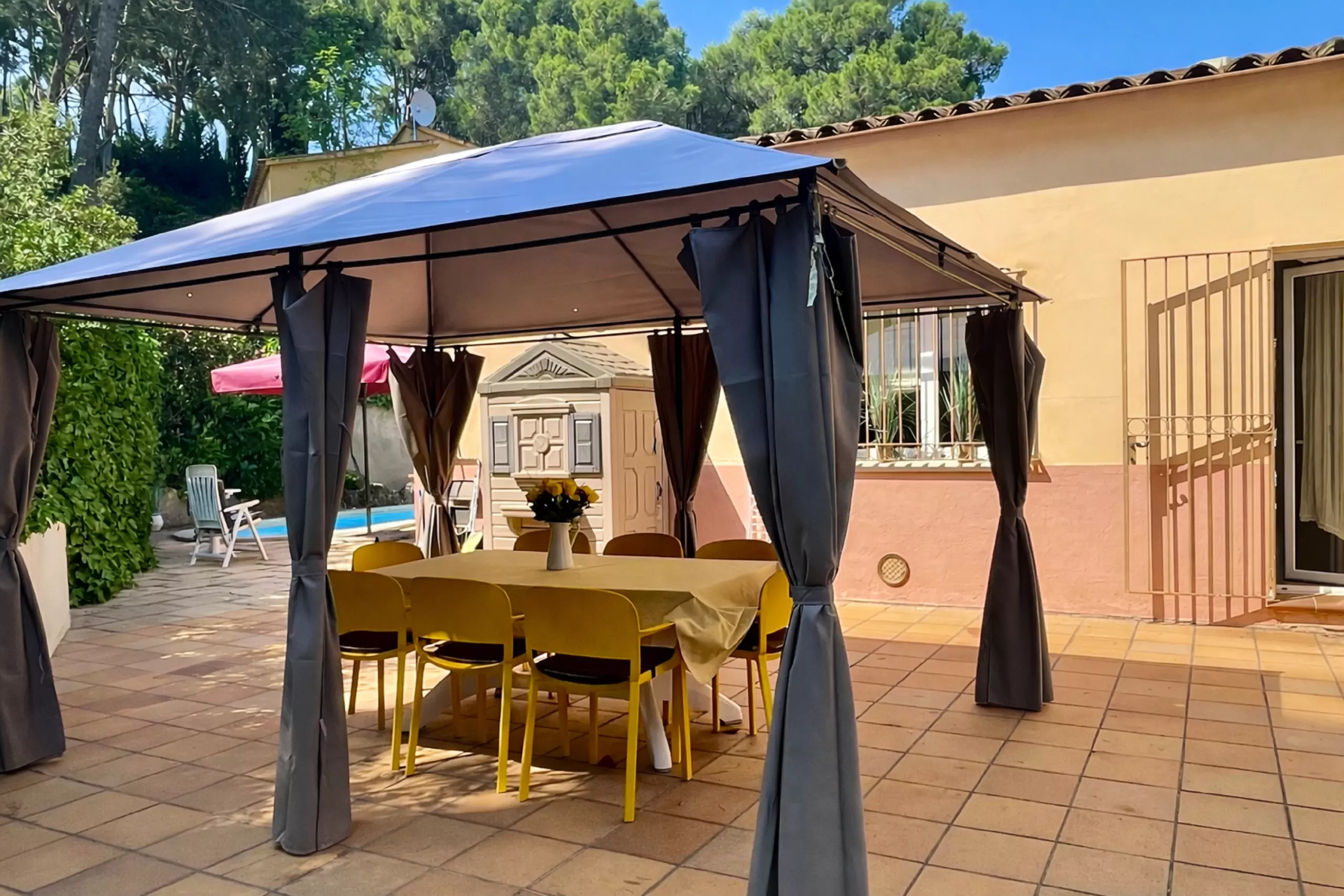 Plongez-vous dans la fraîcheur de votre propre piscine privée, où vous pourrez profiter de moments de plaisir sous le chaud soleil. Le jardin luxuriant qui entoure la propriété crée une atmosphère tranquille et relaxante, idéale pour des repas en plein air ou simplement pour se détendre au milieu de la nature.
