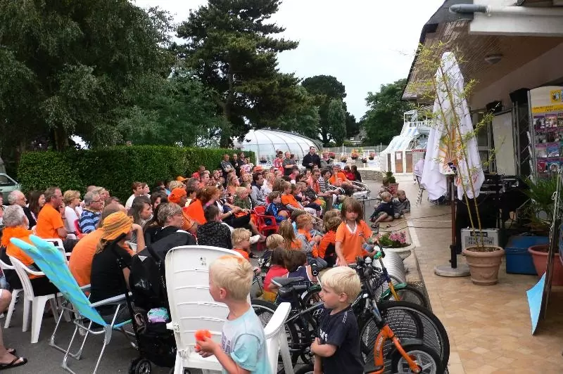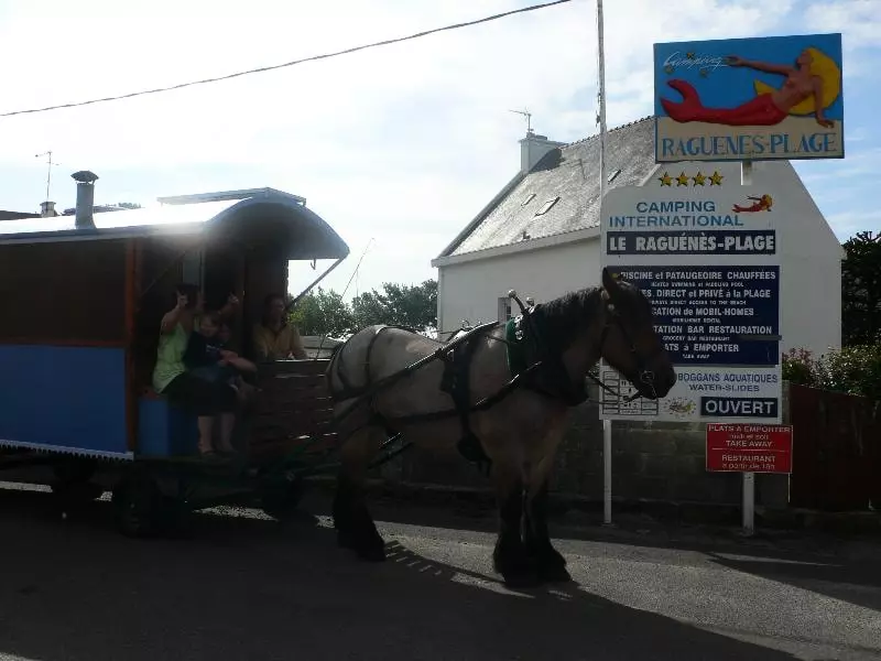 Le camping est situé dans un cadre touristique, calme et reposant. C'est un parc boisé et fleuri par toutes sortes d'essences et d'oiseaux. Un chemin piétonnier et privé vous conduit directement sur la très grande plage de sable fin de Raguenez (à une distance de 300m). Cette plage, située en face du camping offre toute sécurité pour les enfants. La mer est propice à la pêche, ainsi qu'aux sports nautiques. Elle s'ouvre sur les îles Gléna, Groix, Verte et mouillages (sur demande) à la mairie.