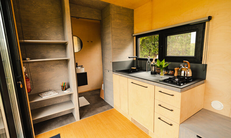 Tiny House - 2 adultes + 2 enfants jusqu'à 12 ans + 1 bébé avec :