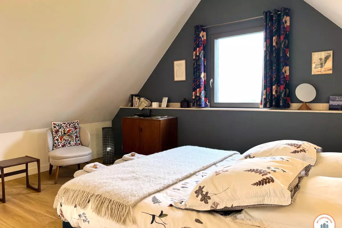Le logement "La Hulotte" étant concomitant avec La Tourterelle, en réservant les deux logements vous pouvez étendre la capacité de couchage à 8 personnes.
