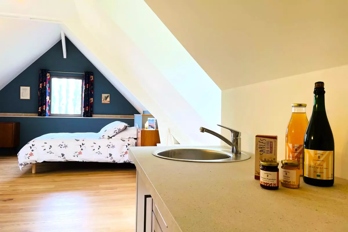 Notre charmant petit studio dispose d'une superbe vue sur le pays d'auge, les vergers, la mer et l'estuaire de la Seine. C'est un petit paradis pour profiter de notre belle région Normande. D'autant que vous disposerez d'un petit jardin extérieur privé où vous pourrez vous détendre lors des premiers rayons de soleil normand !