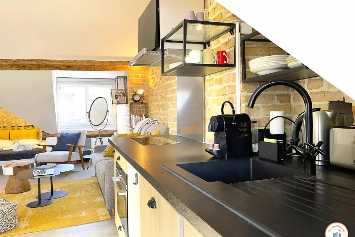 Le logement est très lumineux et sans vis-à-vis. Il est entièrement équipé et peut accueillir jusqu’à 2 voyageurs.