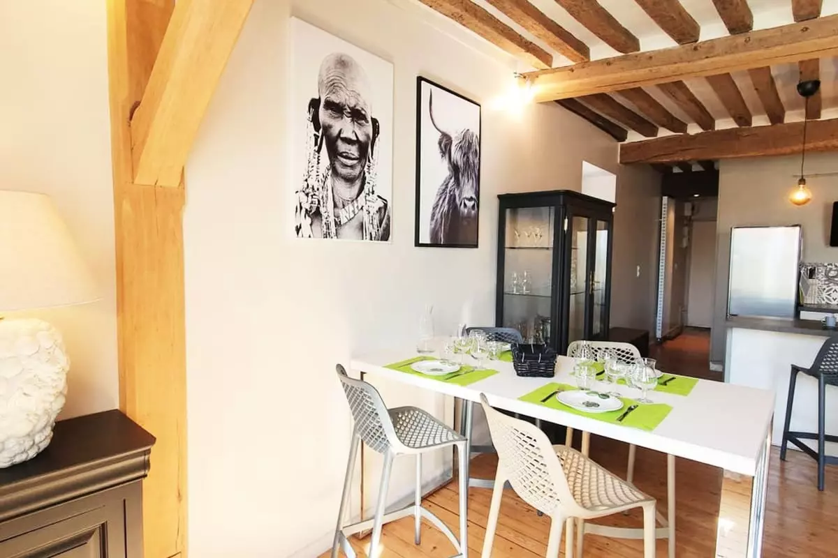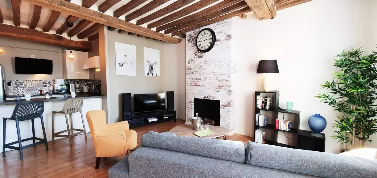Lâappartement est un superbe 2 piĂšces de 50mÂČ avec poutres apparentes, entiĂšrement Ă©quipĂ© pouvant accueillir jusquâĂ 4 voyageurs.