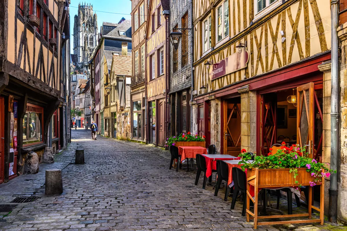 Rouen, dite la Ville aux cent clochers, est située au nord-ouest de la France et traversée par la Seine.