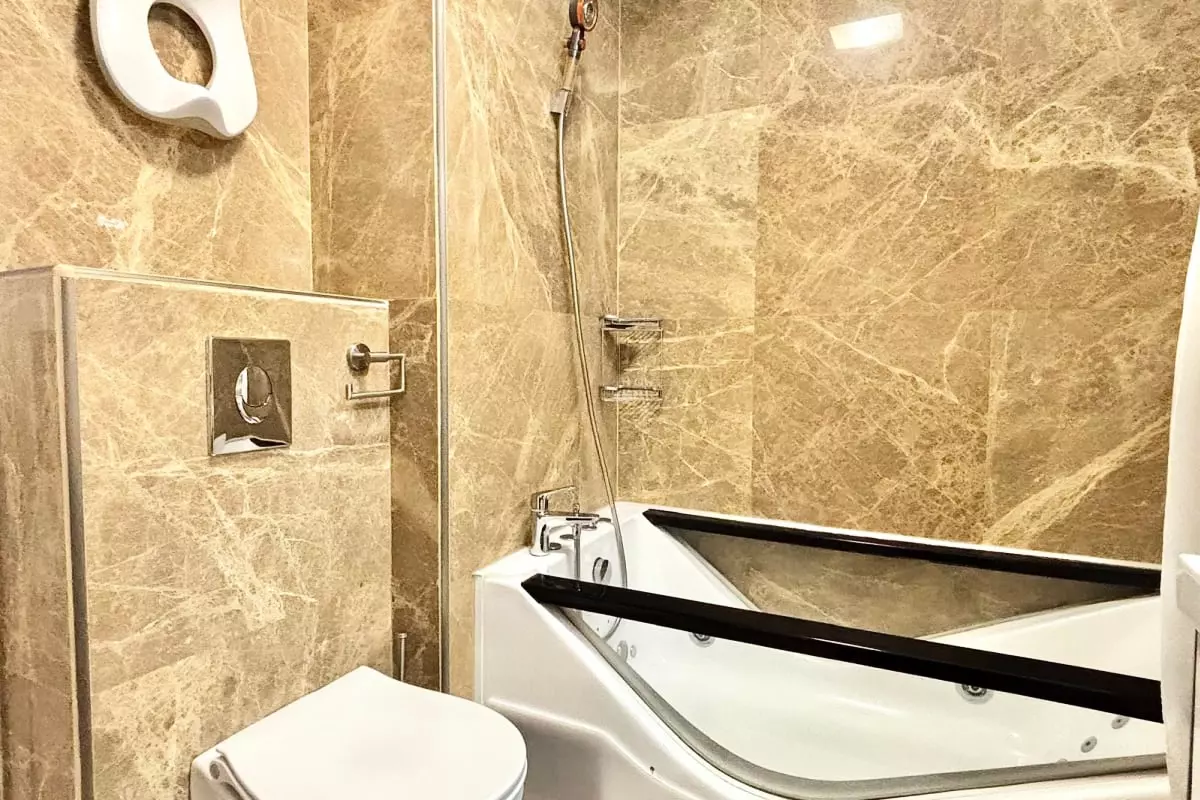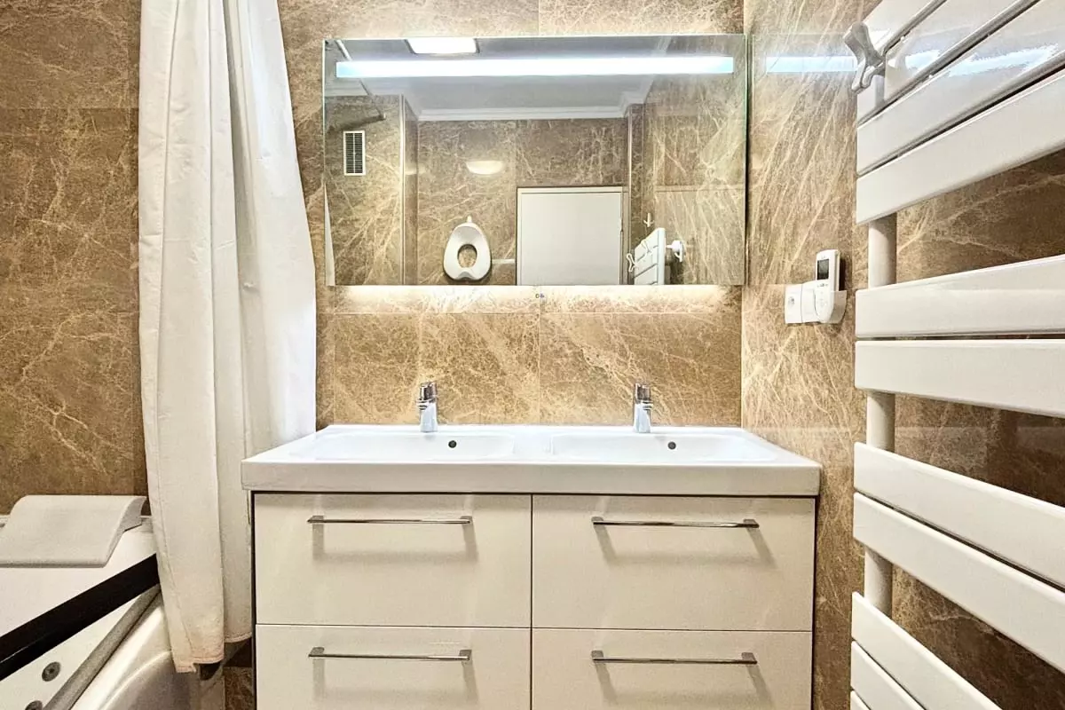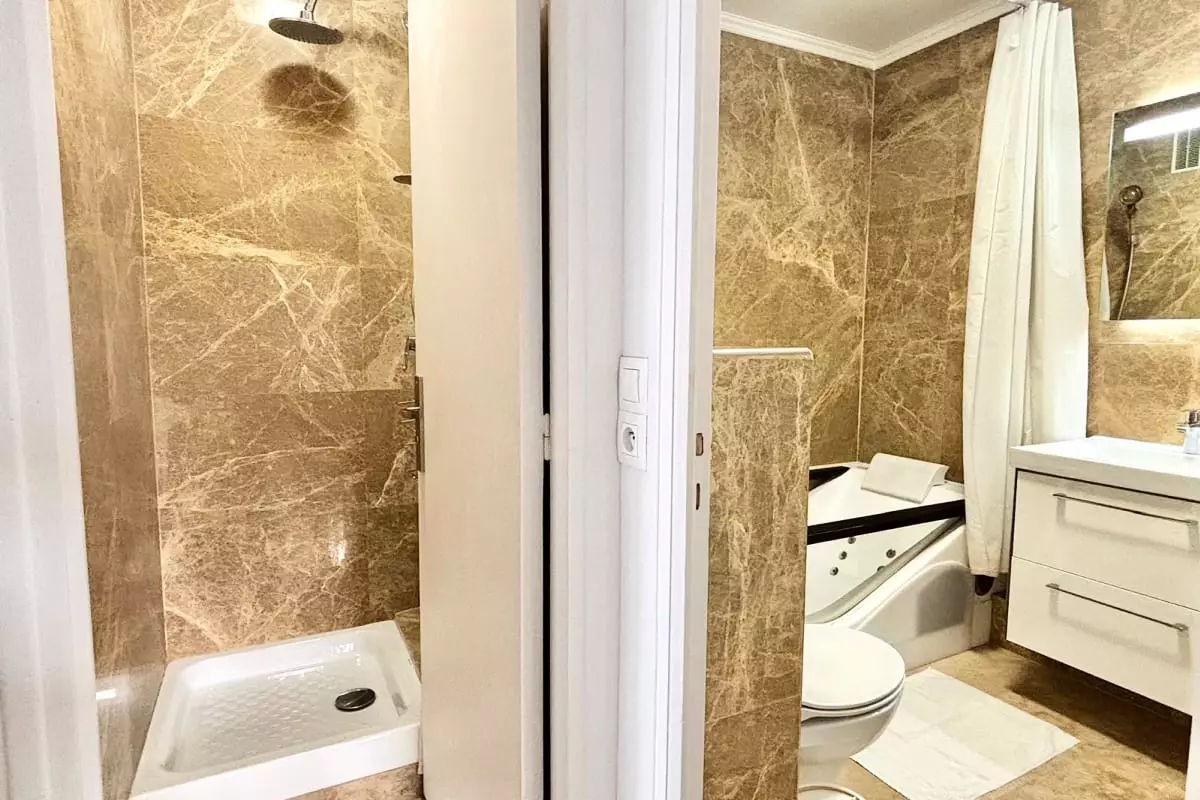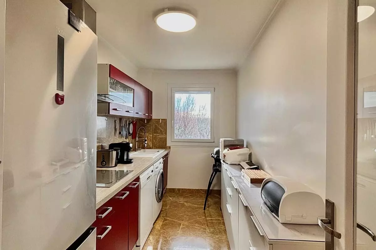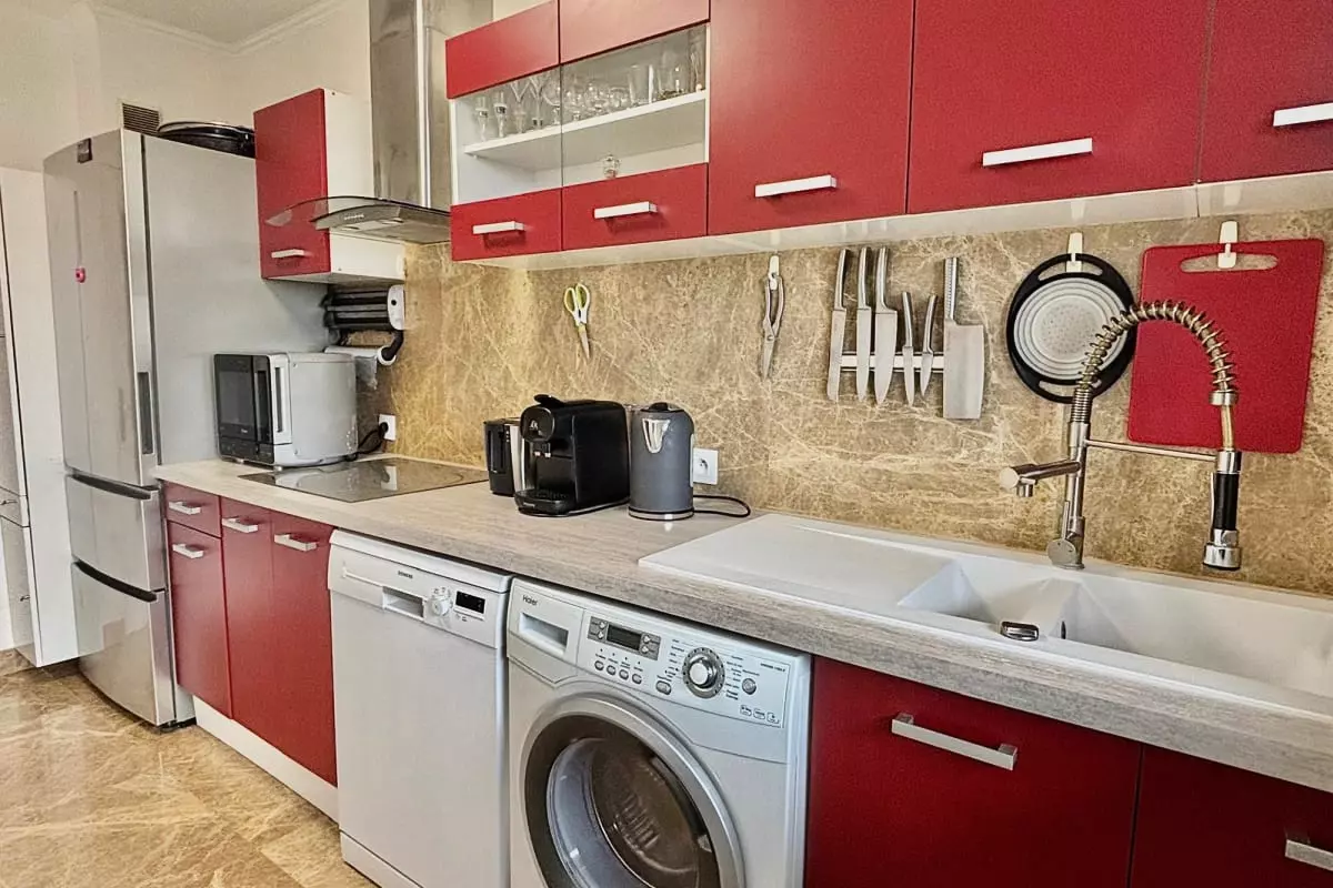 Côté équipements, vous disposerez d'une salle de bain fonctionnelle et d'une cuisine parfaitement équipée avec un lave-vaisselle, un micro-onde et une machine à café Nespresso pour vos réveils en douceur.