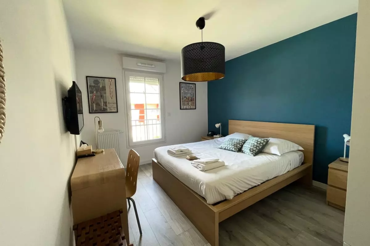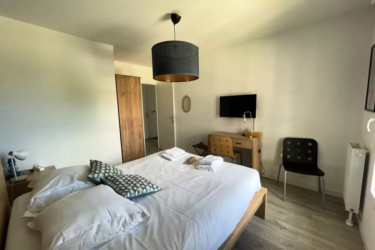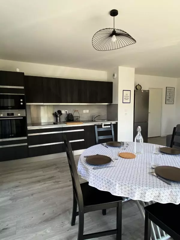Le logement bénéficie d'une prestation hôtelière, avec des draps, serviettes, kit douche et cuisine de qualité.