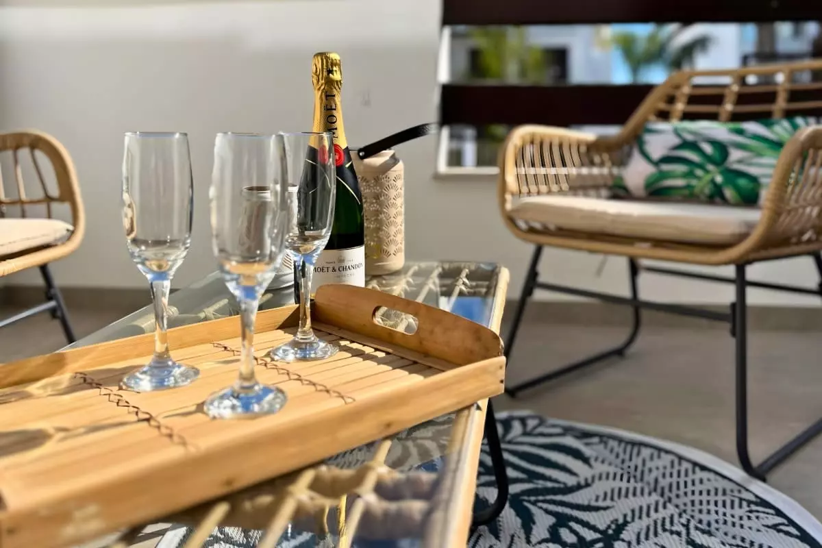 L’appartement Bahia se trouve en rez-de-chaussée, mais quelques marches sont à monter pour accéder à l’entrée de la résidence.