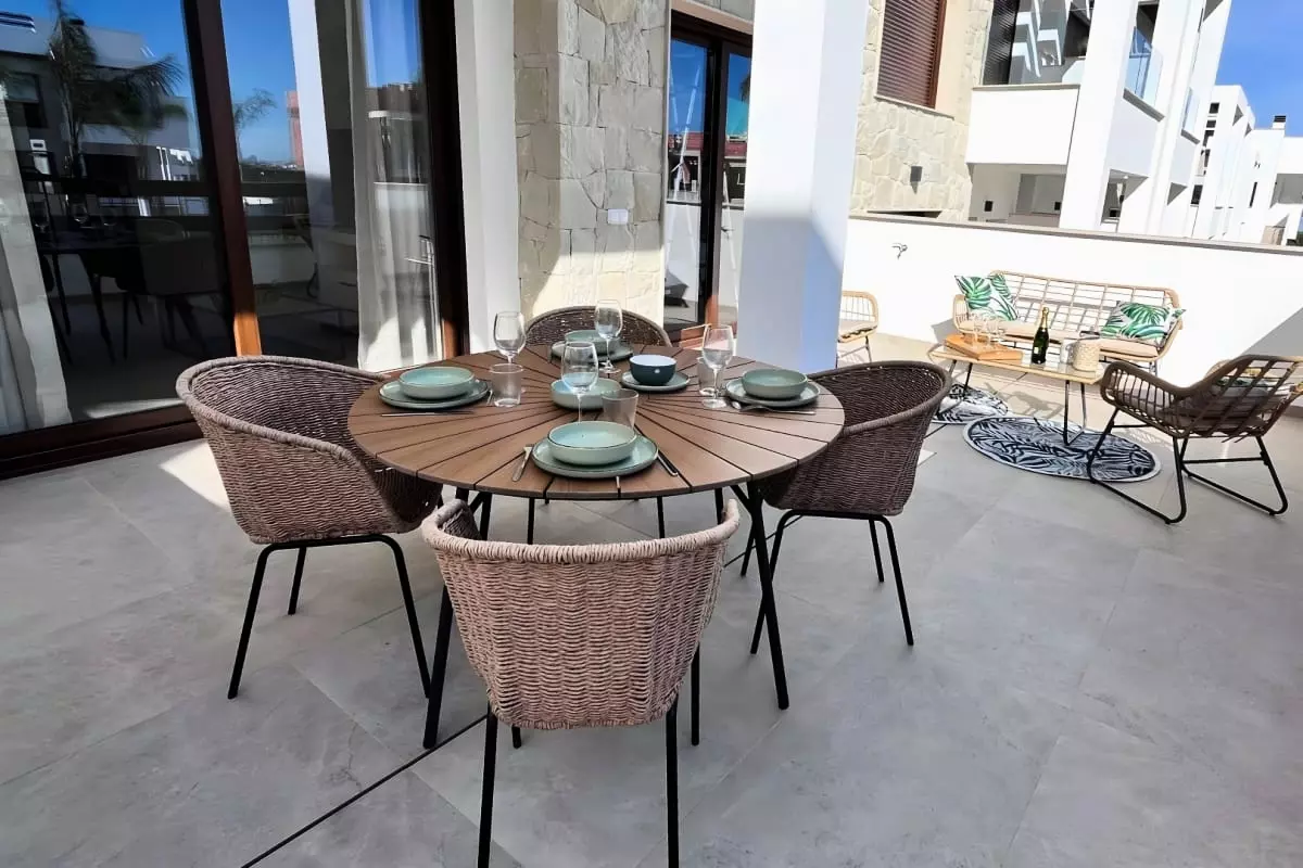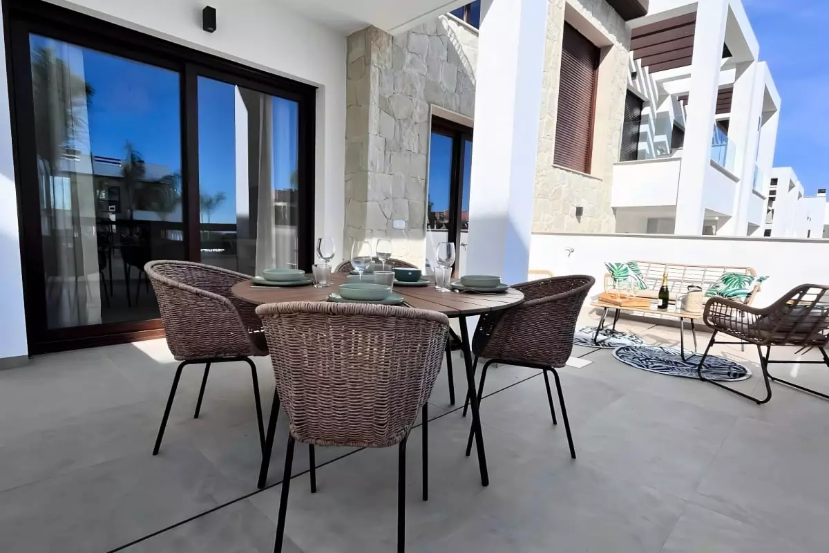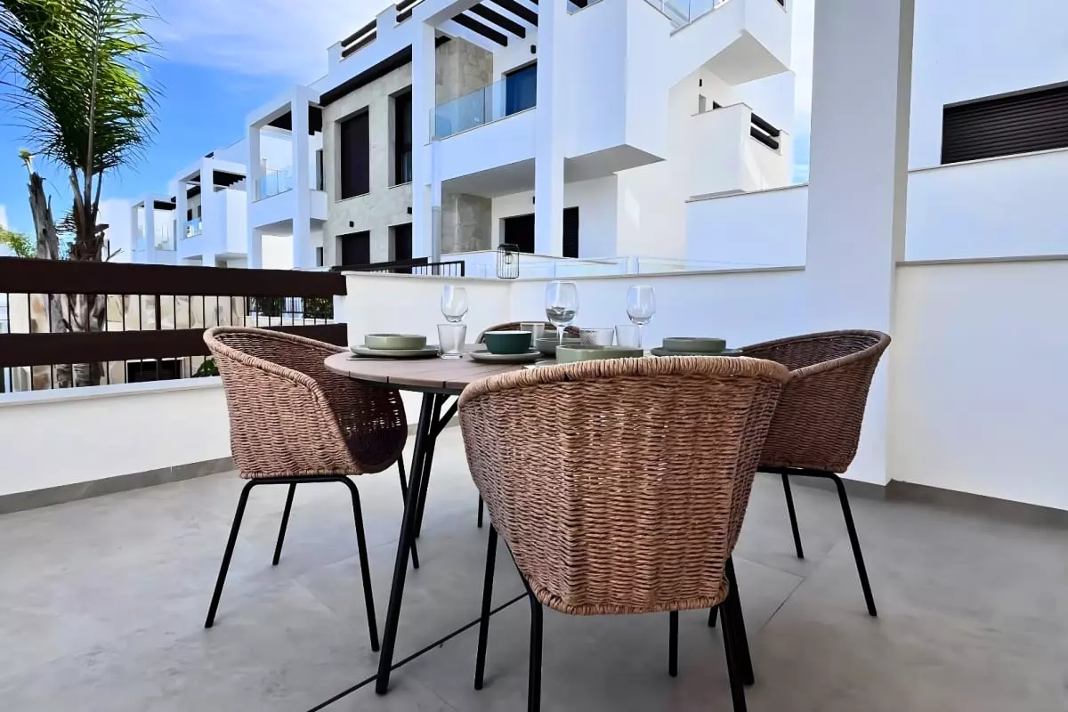 Situé dans une résidence moderne avec vastes jardins et une superbe piscine communautaire, Bahia est le parfait équilibre entre confort, nature et modernité… à seulement 10 minutes des plages et du centre commercial La Zenia.