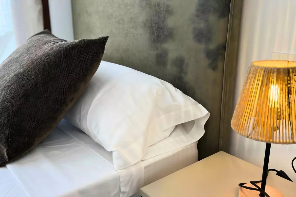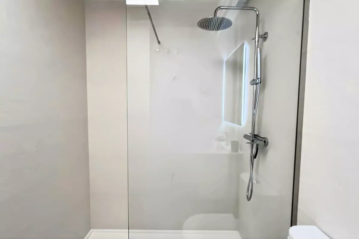 La suite parentale comprend un lit double et une salle de bains privative avec douche et toilettes. La seconde chambre offre deux lits simples. Une deuxième salle de bains avec douche et toilettes se trouve dans le couloir, pratique pour les familles.