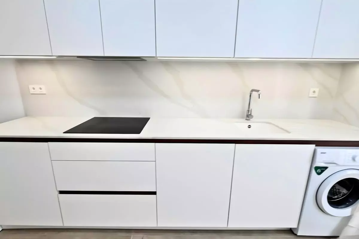 La zone autour de la résidence fait encore l’objet de certains travaux, mais le logement reste totalement fonctionnel et agréable.