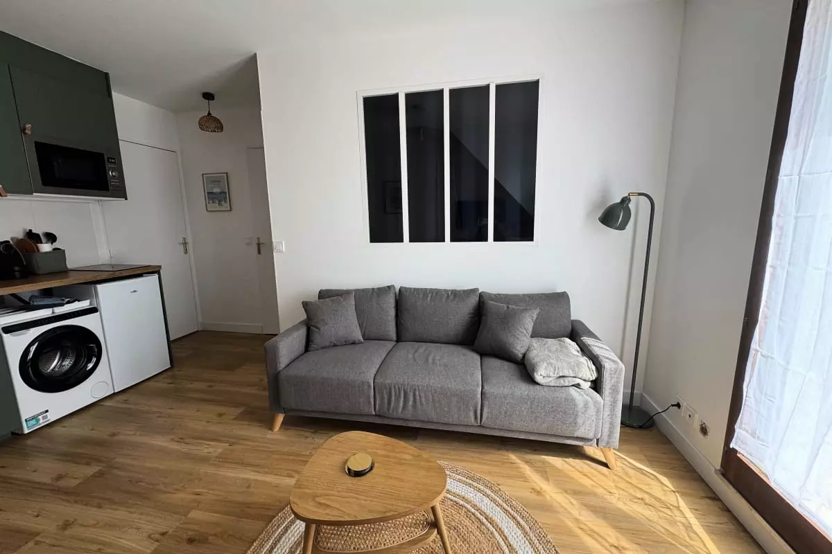 Charmant 31 m² entièrement rénové avec terrasse et balcon, situé à seulement 100 mètres de la célèbre Promenade Marcel Proust à Cabourg.