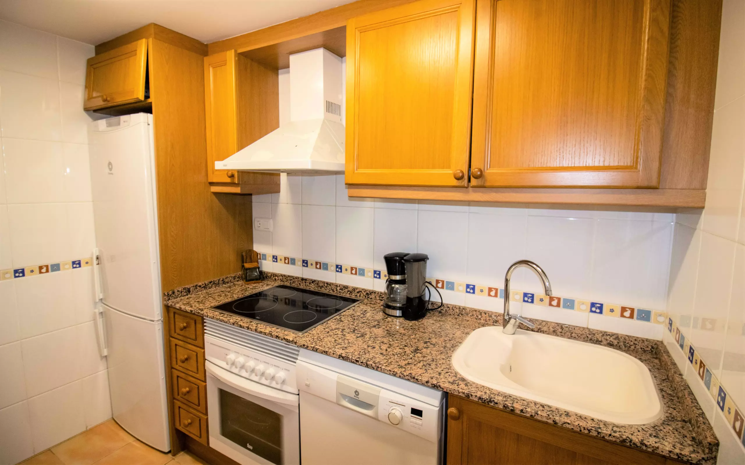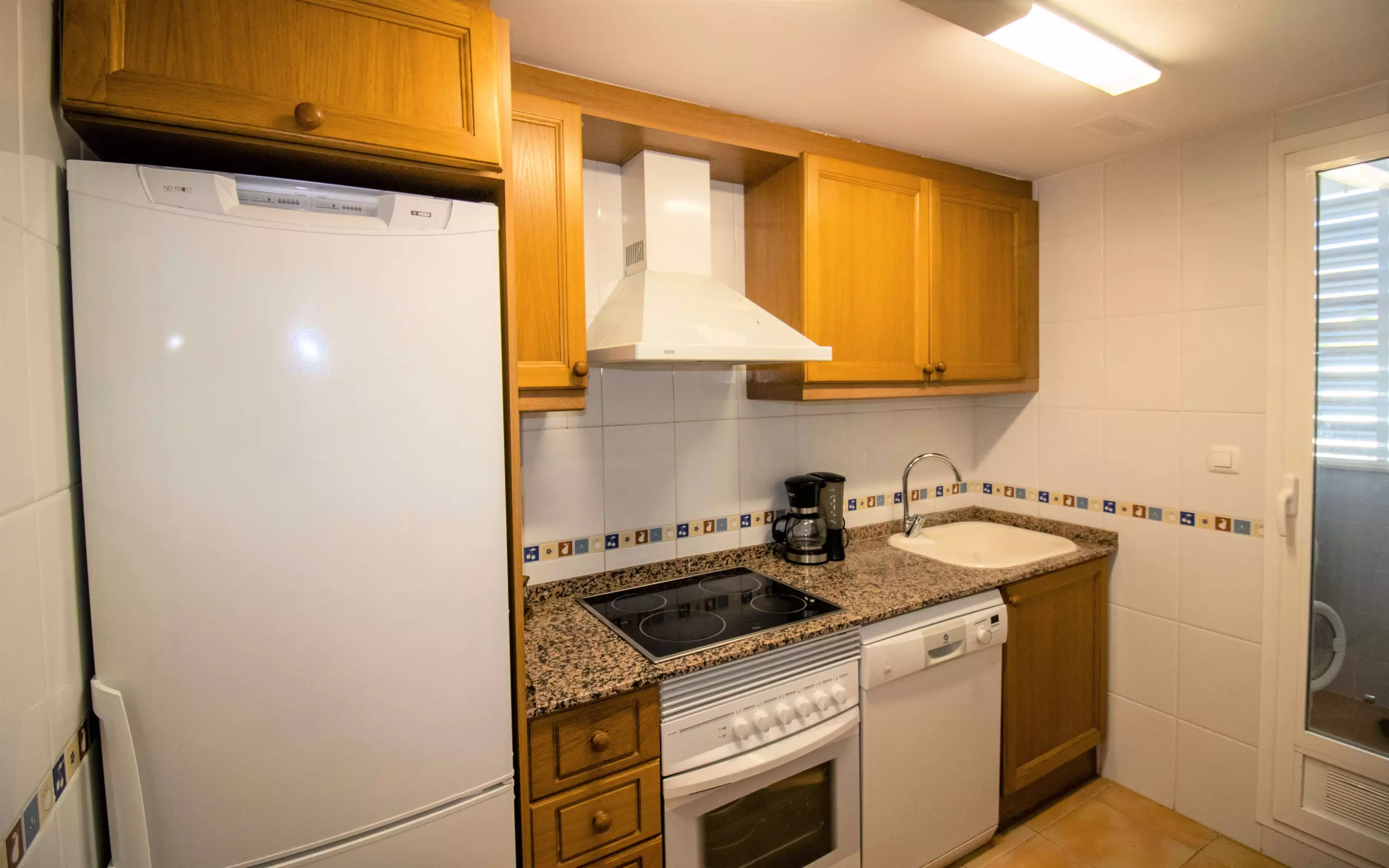 La cuisine, avec plaque vitrocéramique, est équipée d'un réfrigérateur, d'un micro-ondes, d'un four, d'un congélateur, d'un lave-linge, d'un lave-vaisselle, de vaisselle, d'ustensiles de cuisine et d'une machine à café.