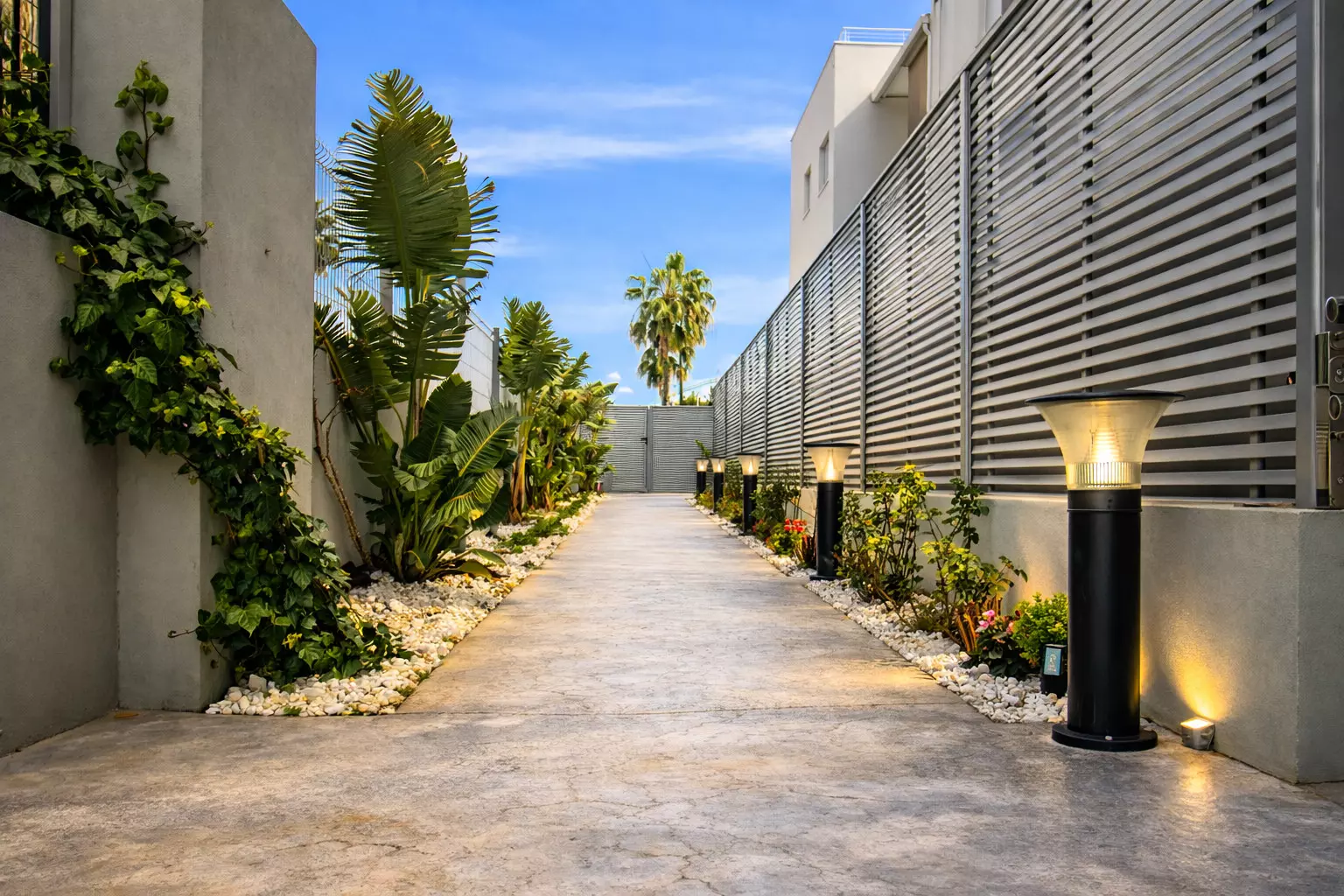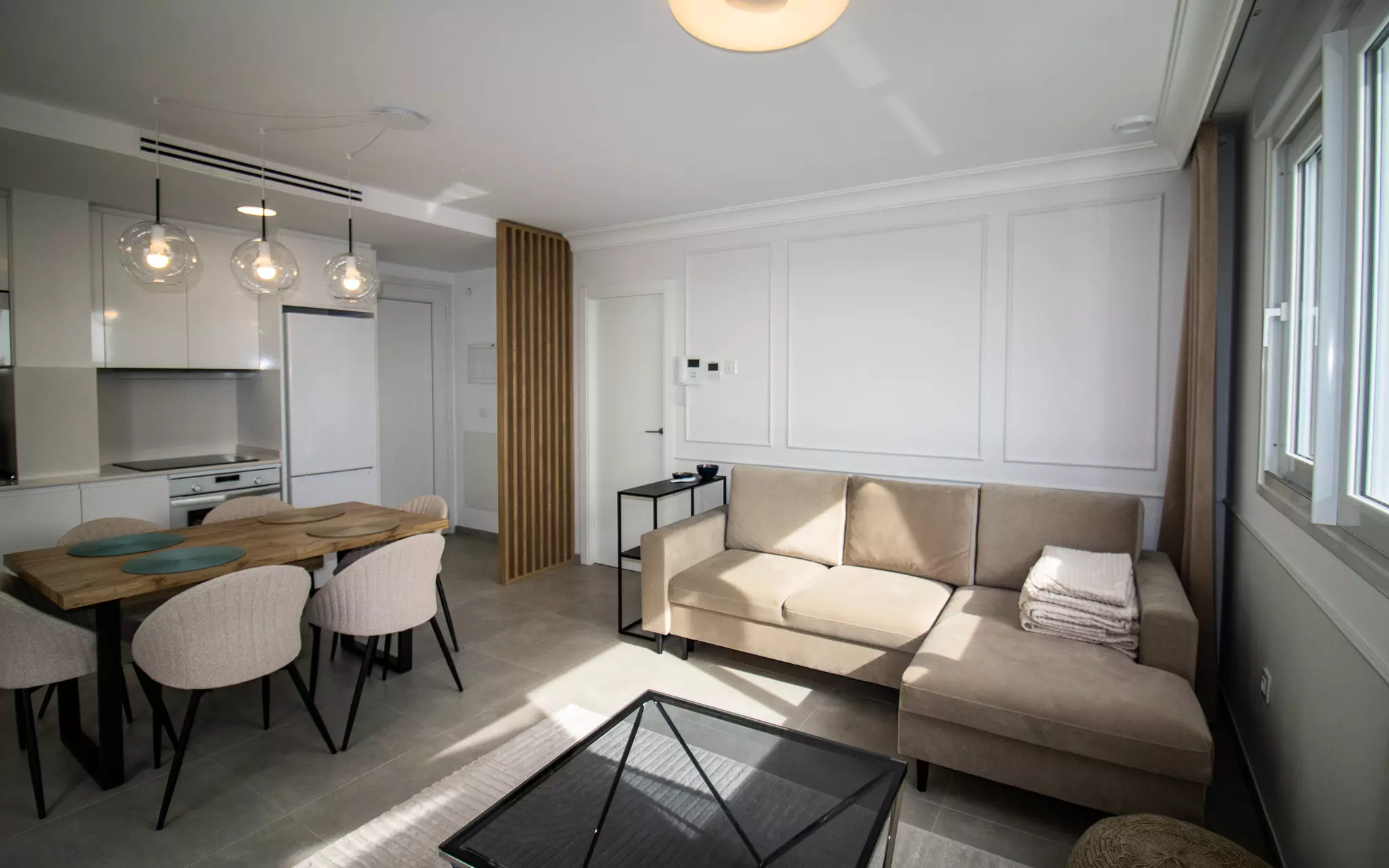 Logement de 50 m², avec vue sur la mer et le jardin.