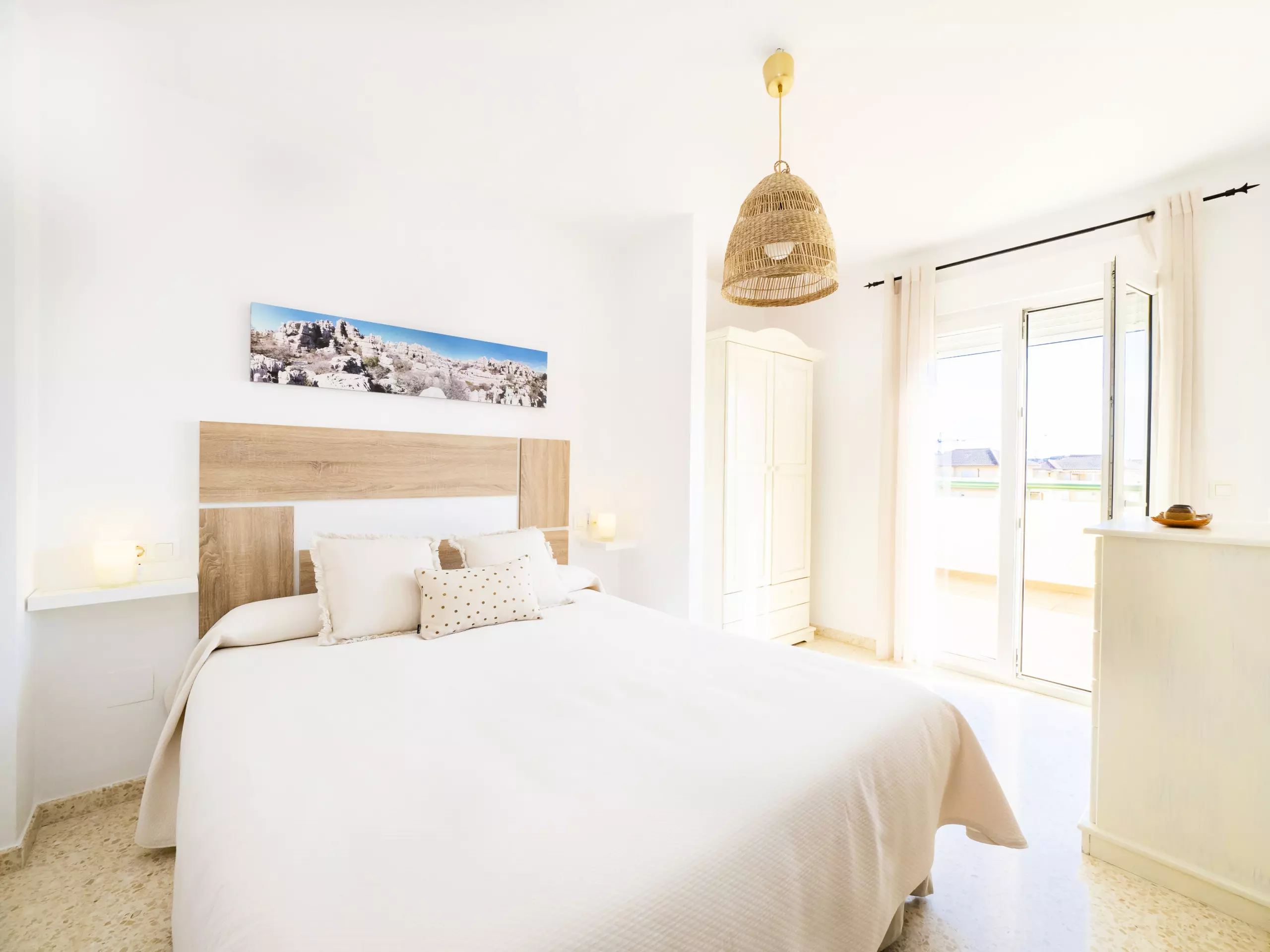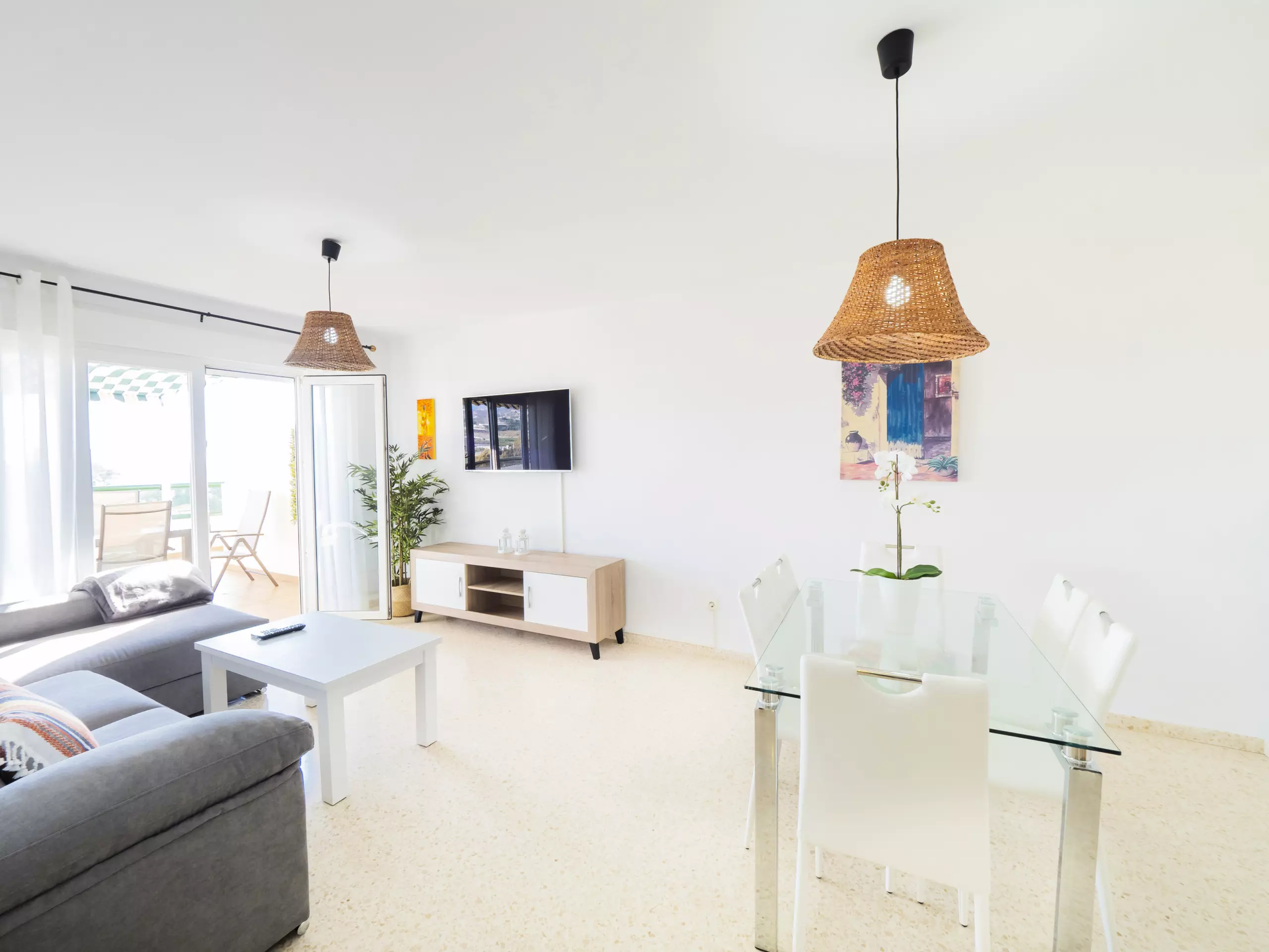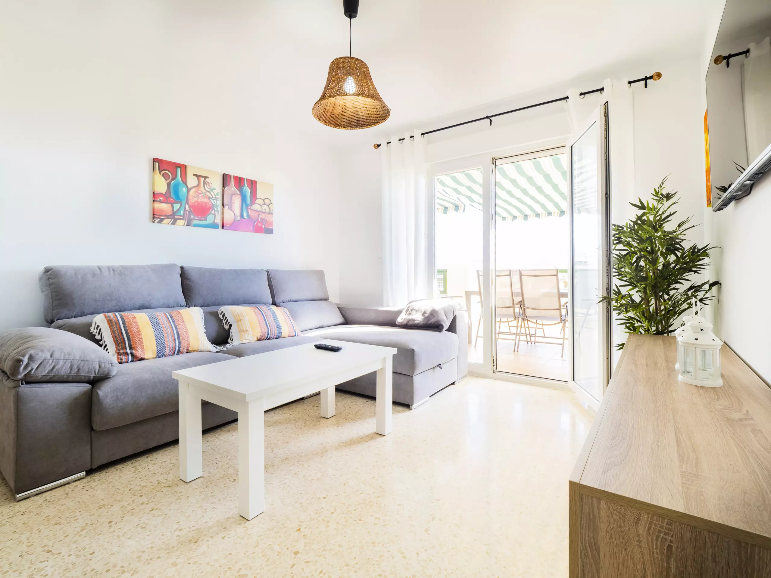 Le logement, de 85 m² meublé avec goût et style moderne, dispose d'un grand salon-salle à manger lumineux avec de grandes baies vitrées qui donnent sur une terrasse de 45 m², équipée de mobilier extérieur et d'un store pour vous protéger du soleil et de l'humidité, en faisant un espace parfait pour prendre son petit-déjeuner ou déjeuner en contemplant les levers de soleil et la tranquillité des environs. ??