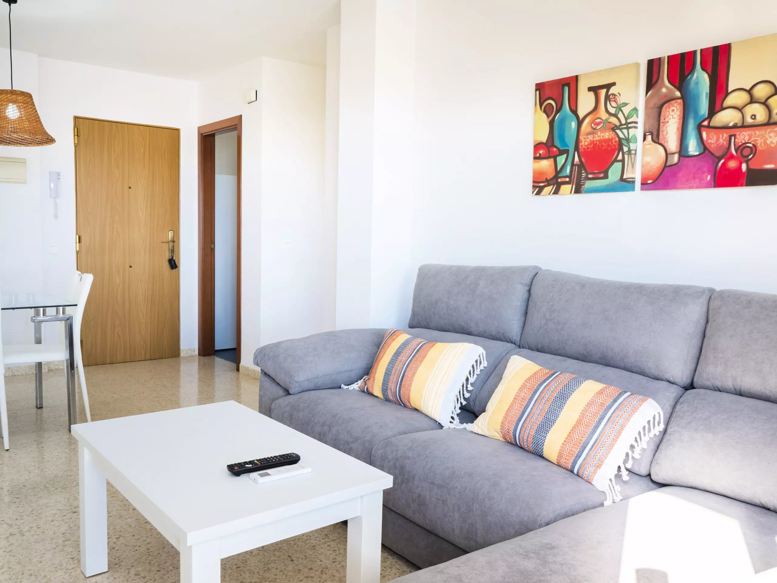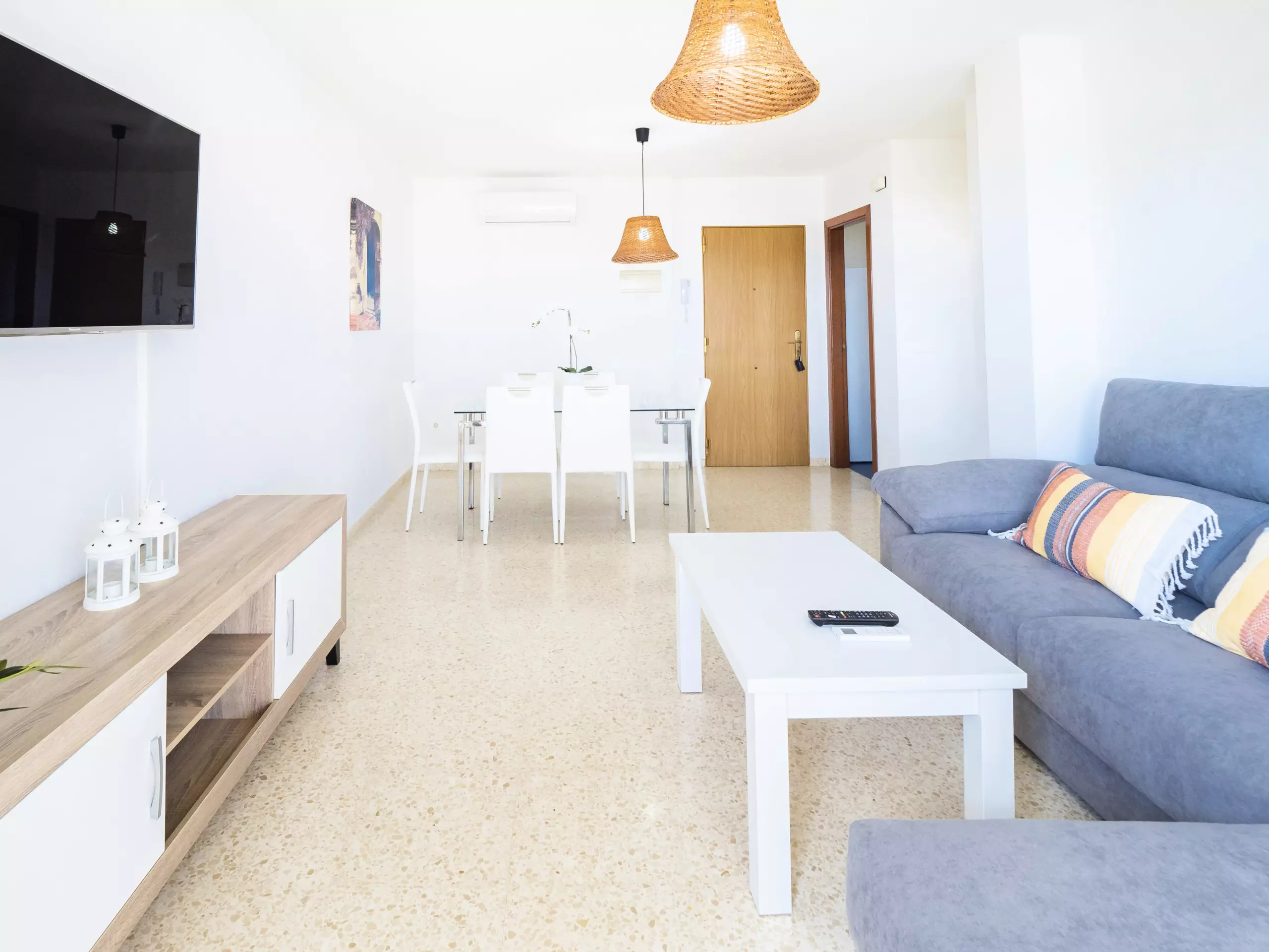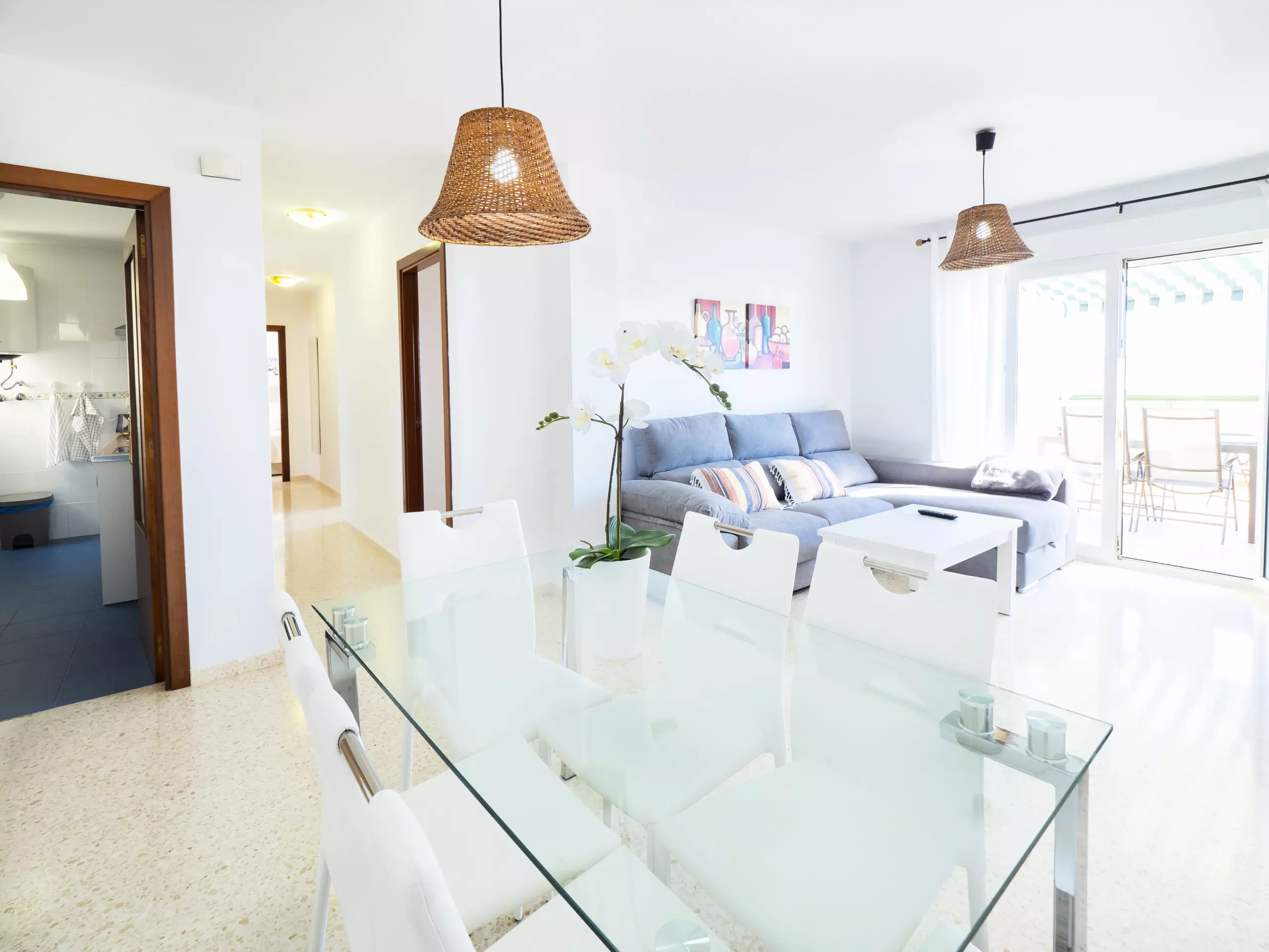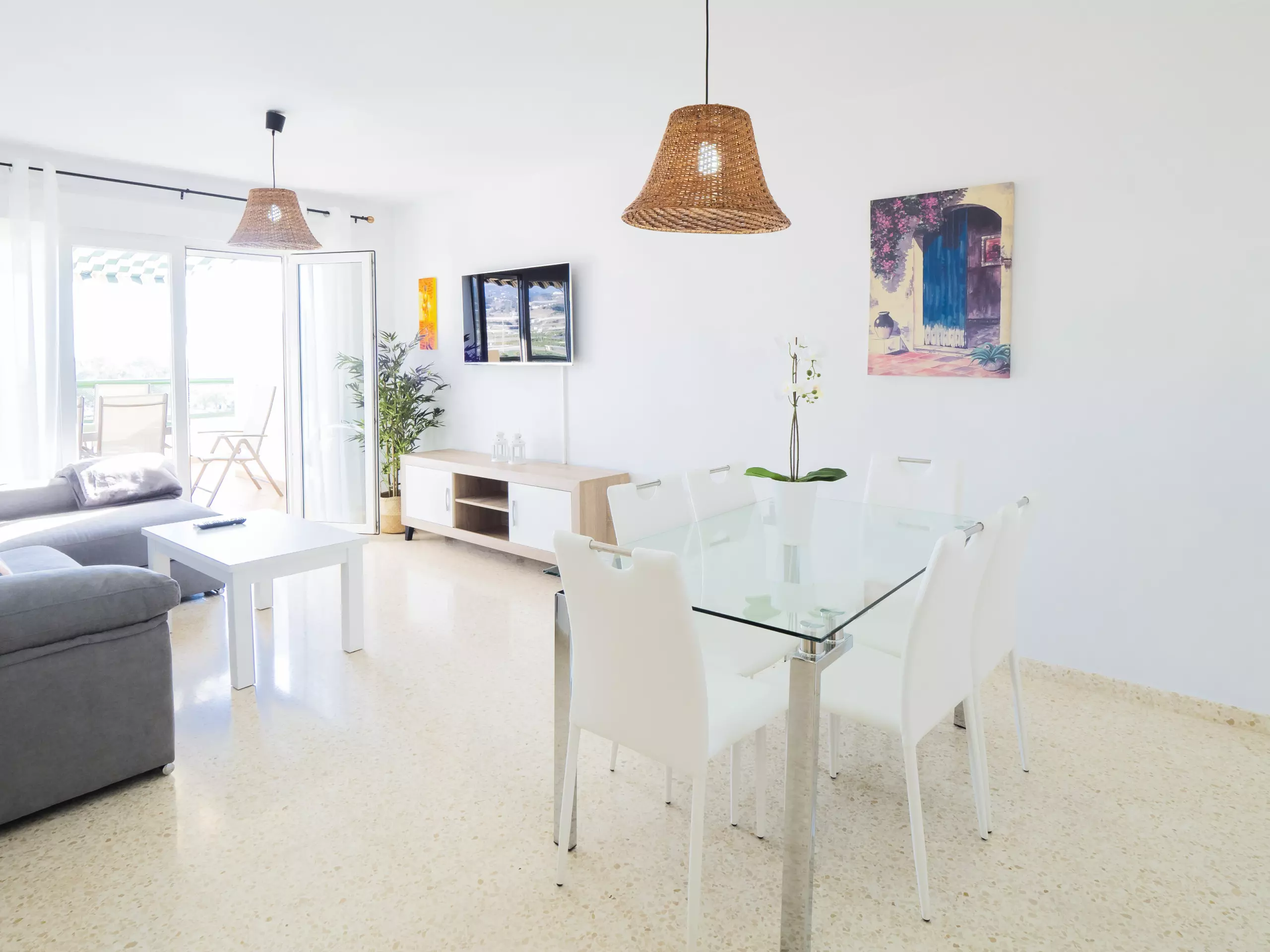 Le logement, de 85 m² meublé avec goût et style moderne, dispose d'un grand salon-salle à manger lumineux avec de grandes baies vitrées qui donnent sur une terrasse de 45 m², équipée de mobilier extérieur et d'un store pour vous protéger du soleil et de l'humidité, en faisant un espace parfait pour prendre son petit-déjeuner ou déjeuner en contemplant les levers de soleil et la tranquillité des environs. ??