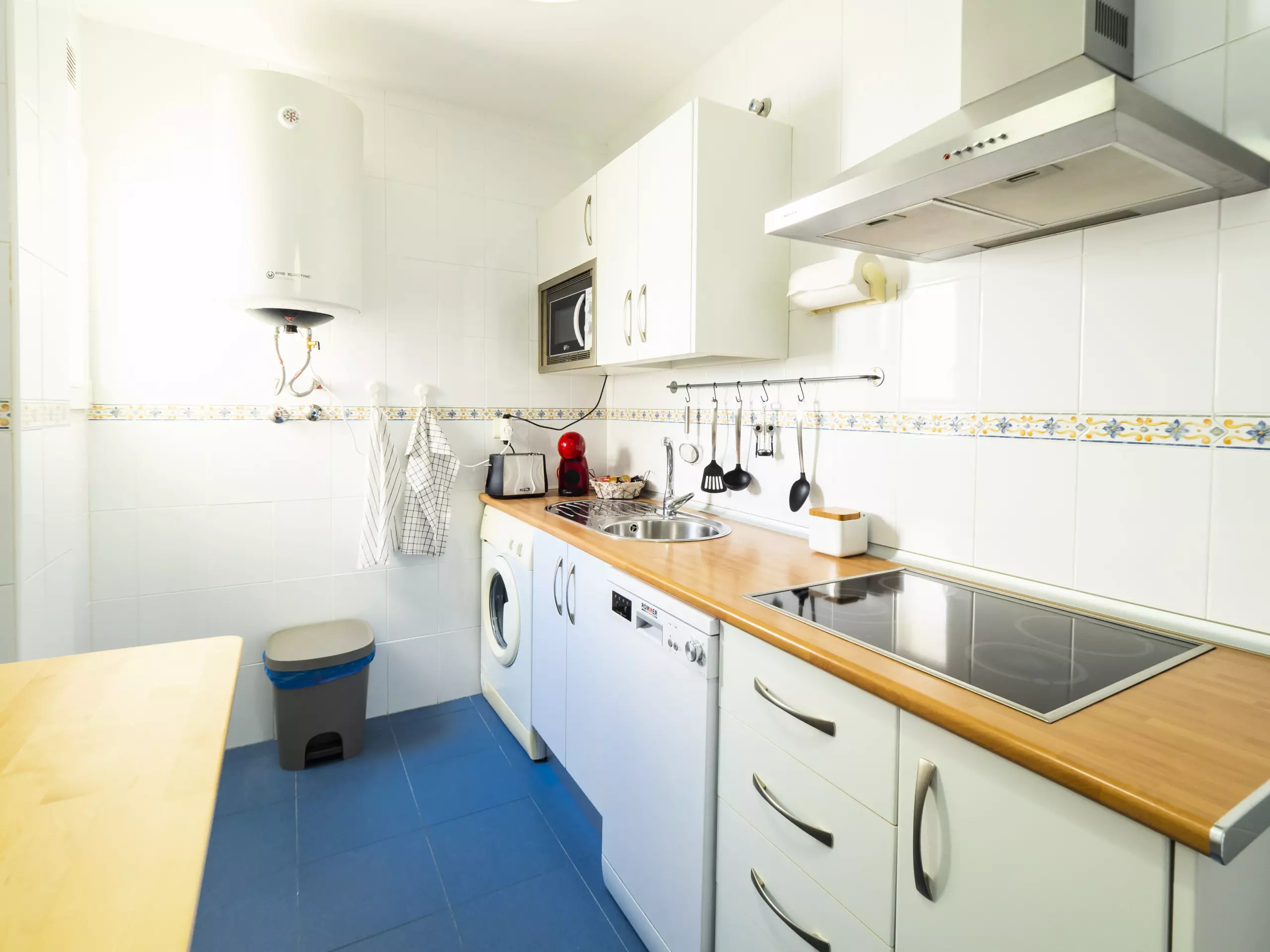 La cuisine indépendante est entièrement équipée avec une plaque vitrocéramique, un réfrigérateur, un micro-ondes, un four, un congélateur, un lave-linge, un lave-vaisselle, une cafetière, un grille-pain, une bouilloire et un presse-agrumes, facilitant la préparation de tous types de repas sans complications. ??