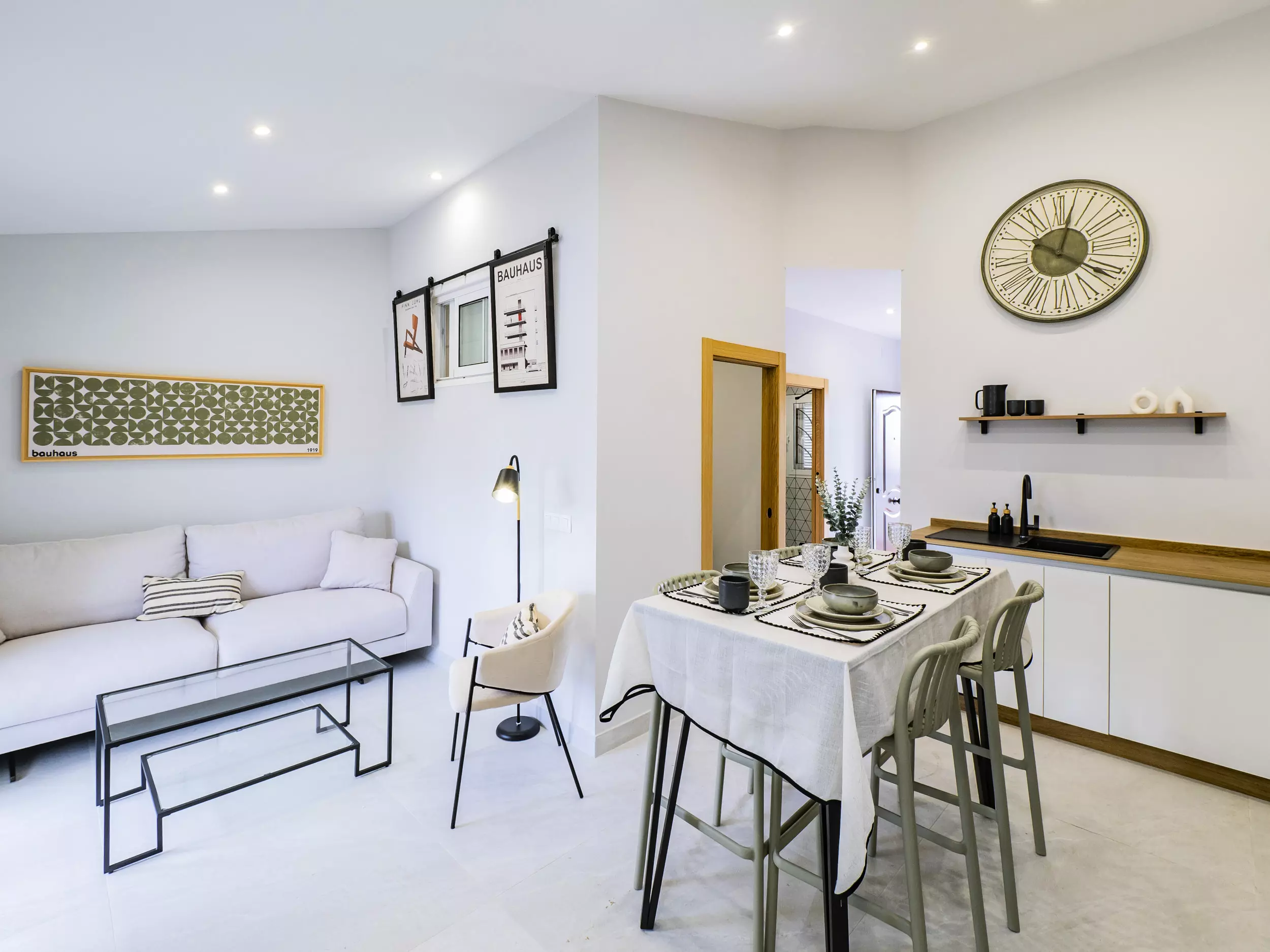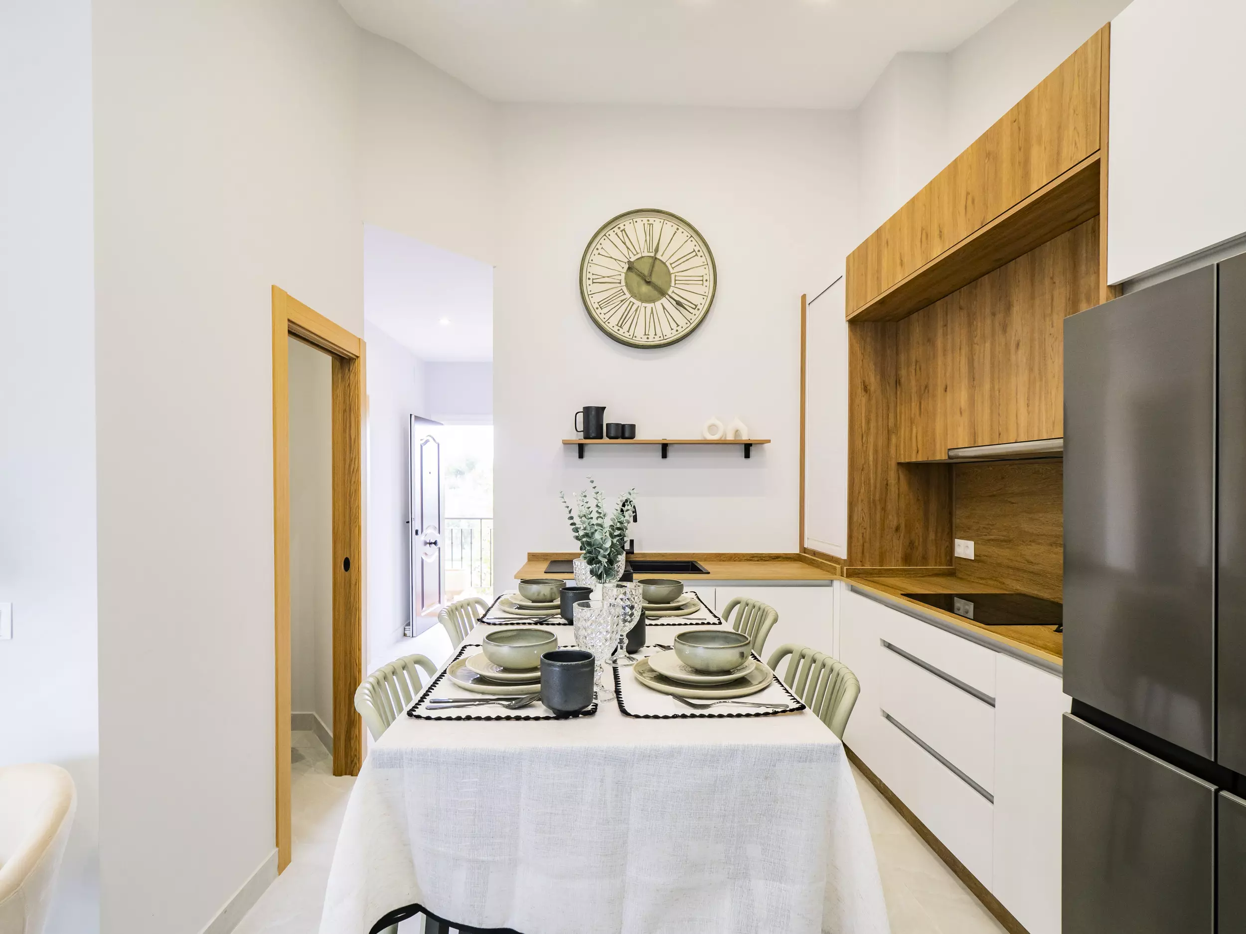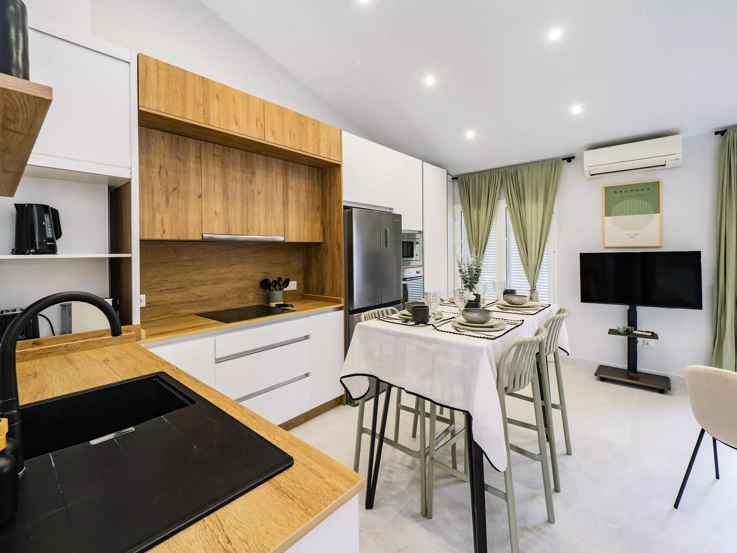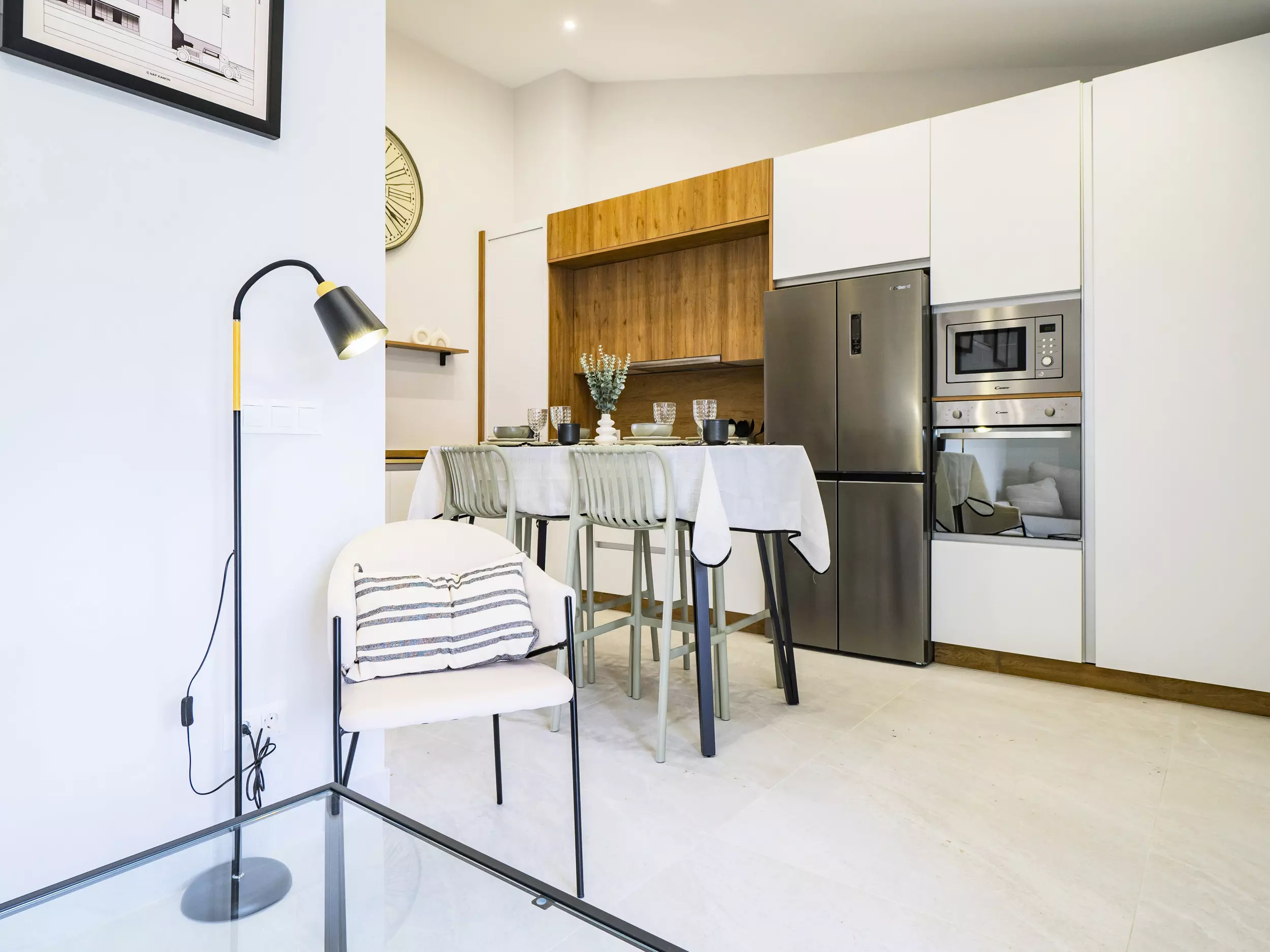 Le logement, avec une décoration moderne et des meubles de haute qualité, dispose de deux chambres : une avec un lit double et l'autre avec un lit double convertible en deux lits individuels, tous deux équipés de la climatisation et d'un espace pour les bagages, garantissant un repos confortable. L'espace salon-salle à manger intègre une cuisine américaine entièrement équipée avec des appareils électroménagers de dernière génération (lave-linge, lave-vaisselle, réfrigérateur, four, micro-ondes, entre autres), conçue pour offrir confort et fonctionnalité. De plus, vous pourrez vous détendre sur une petite terrasse idéale pour profiter d'un café matinal ou d'une lecture tranquille. ??