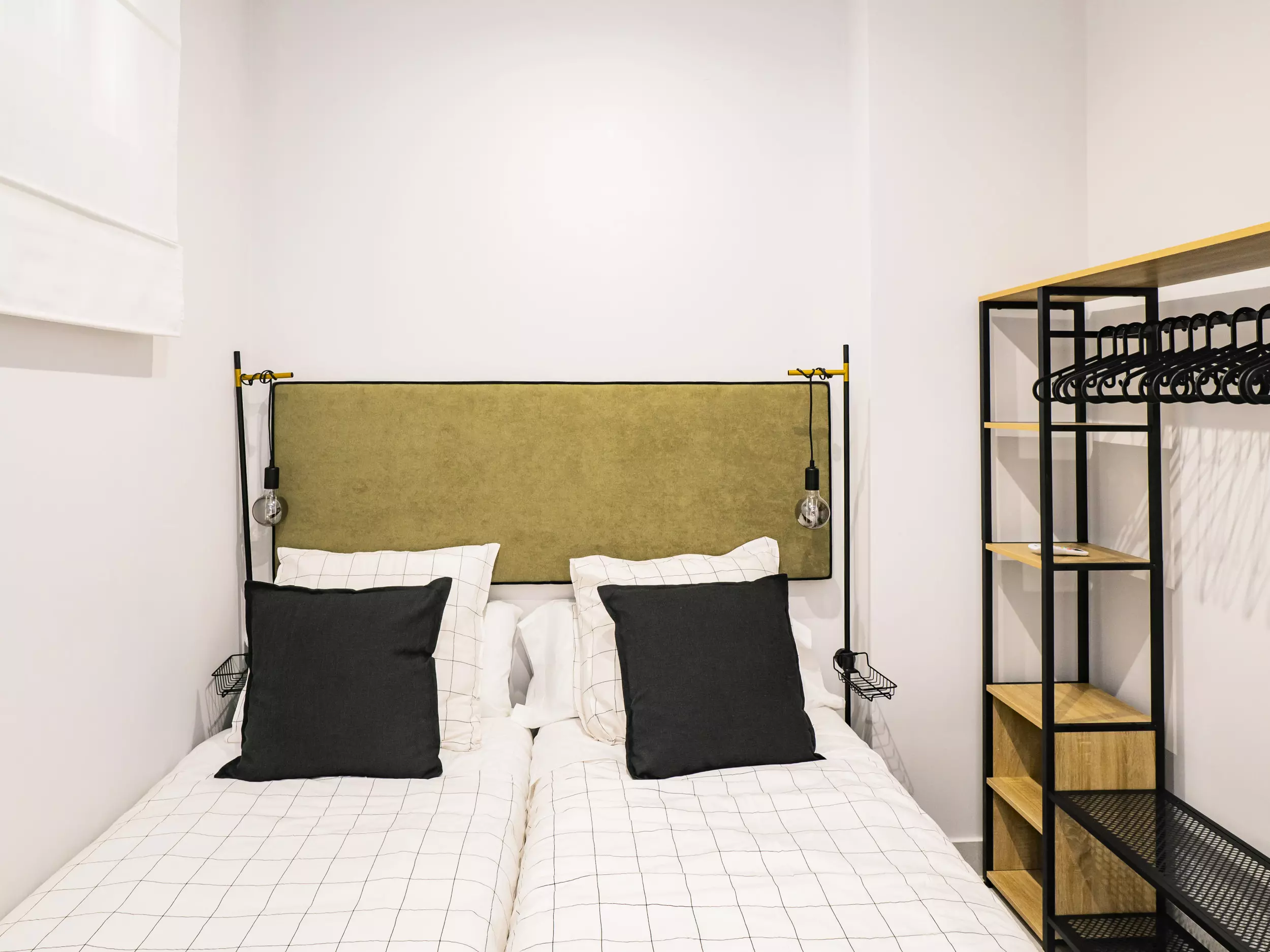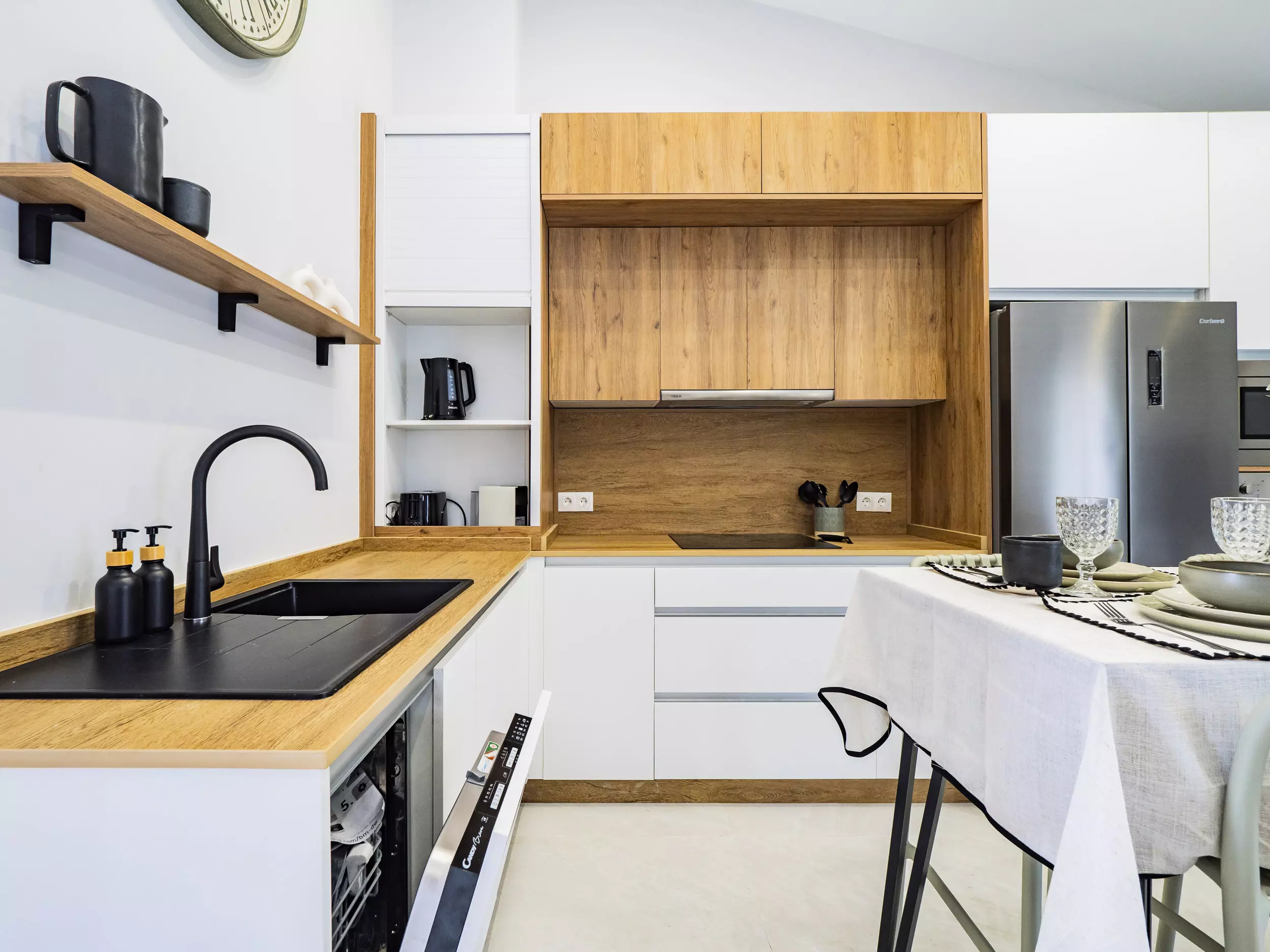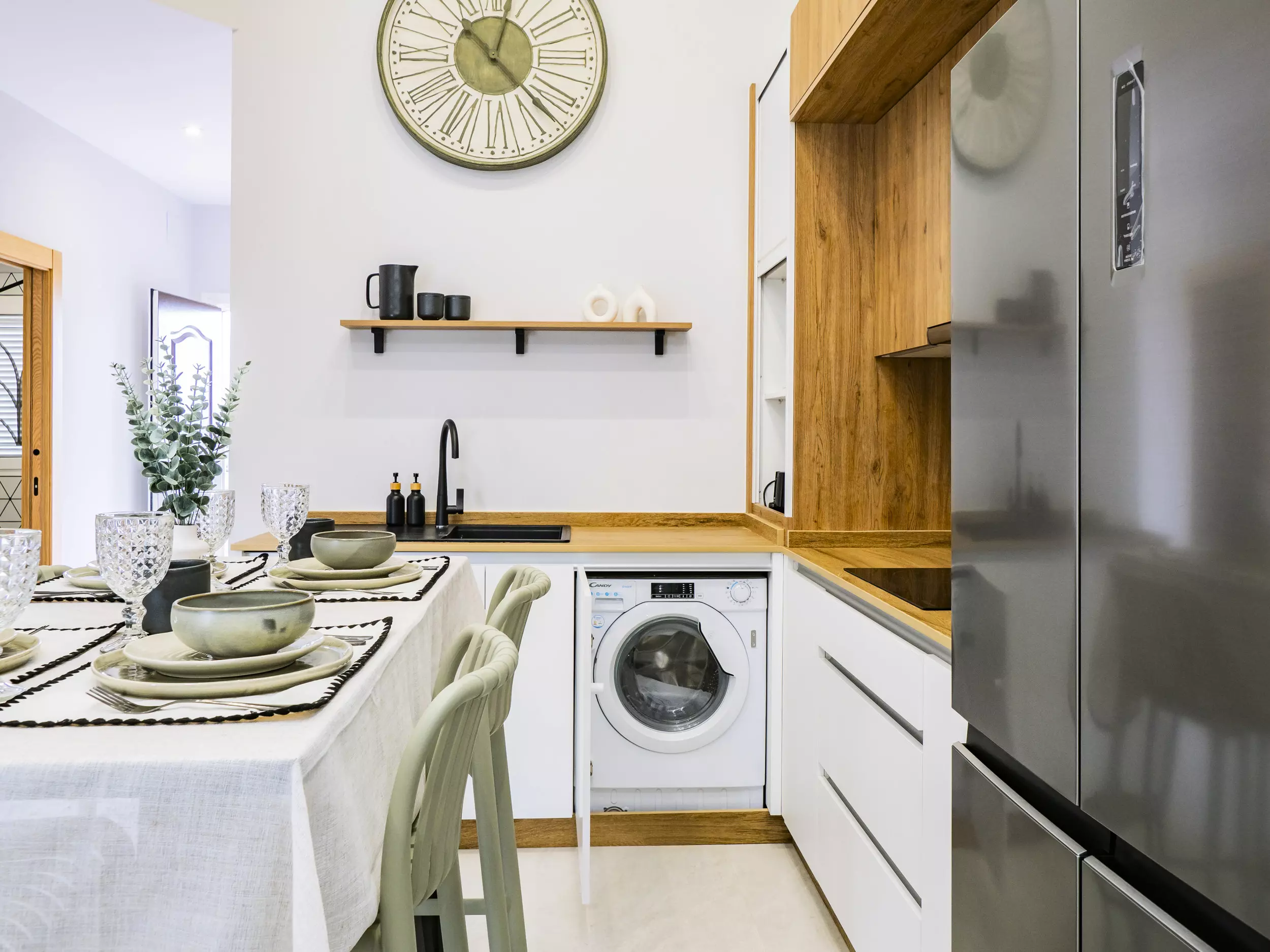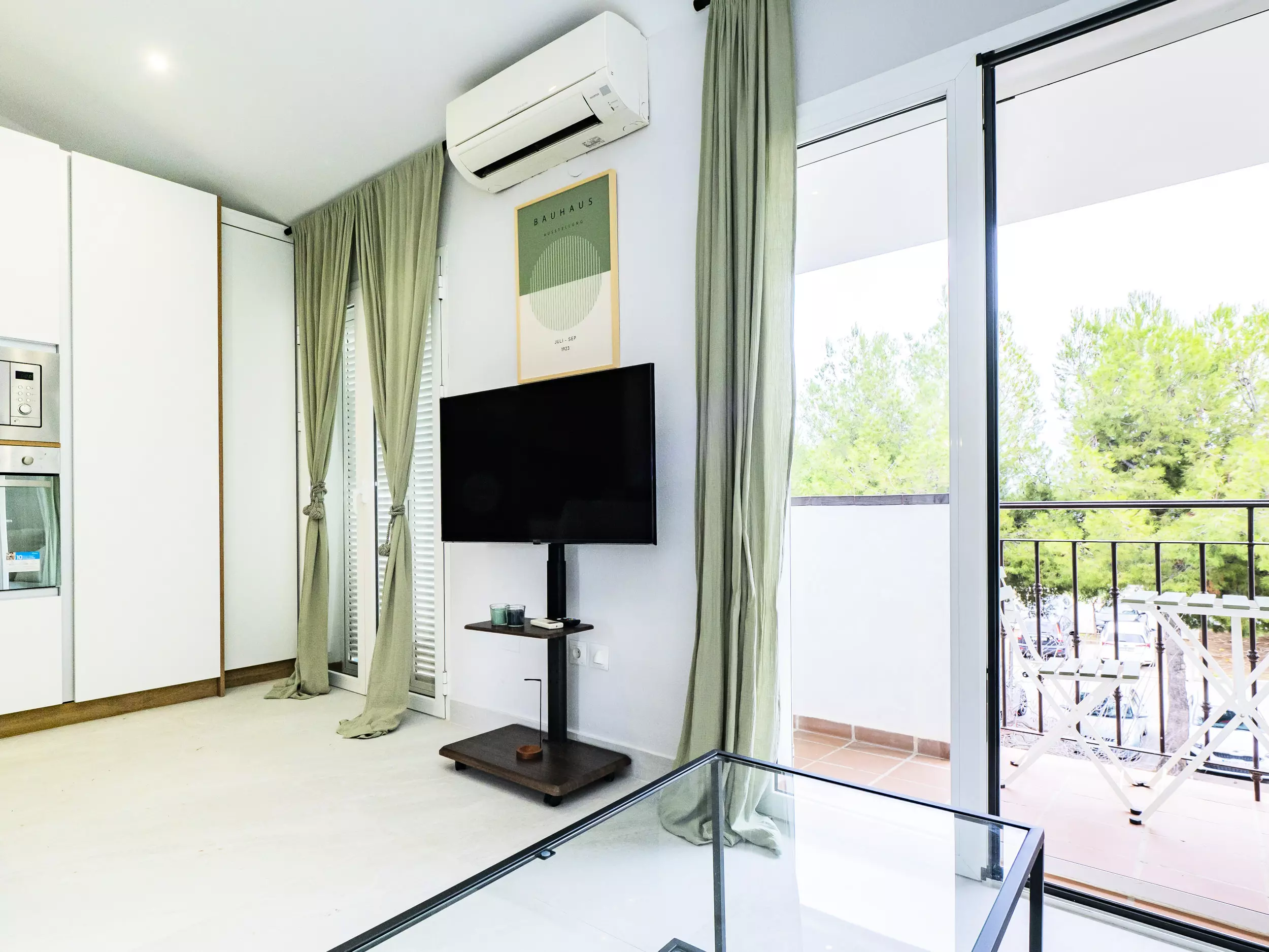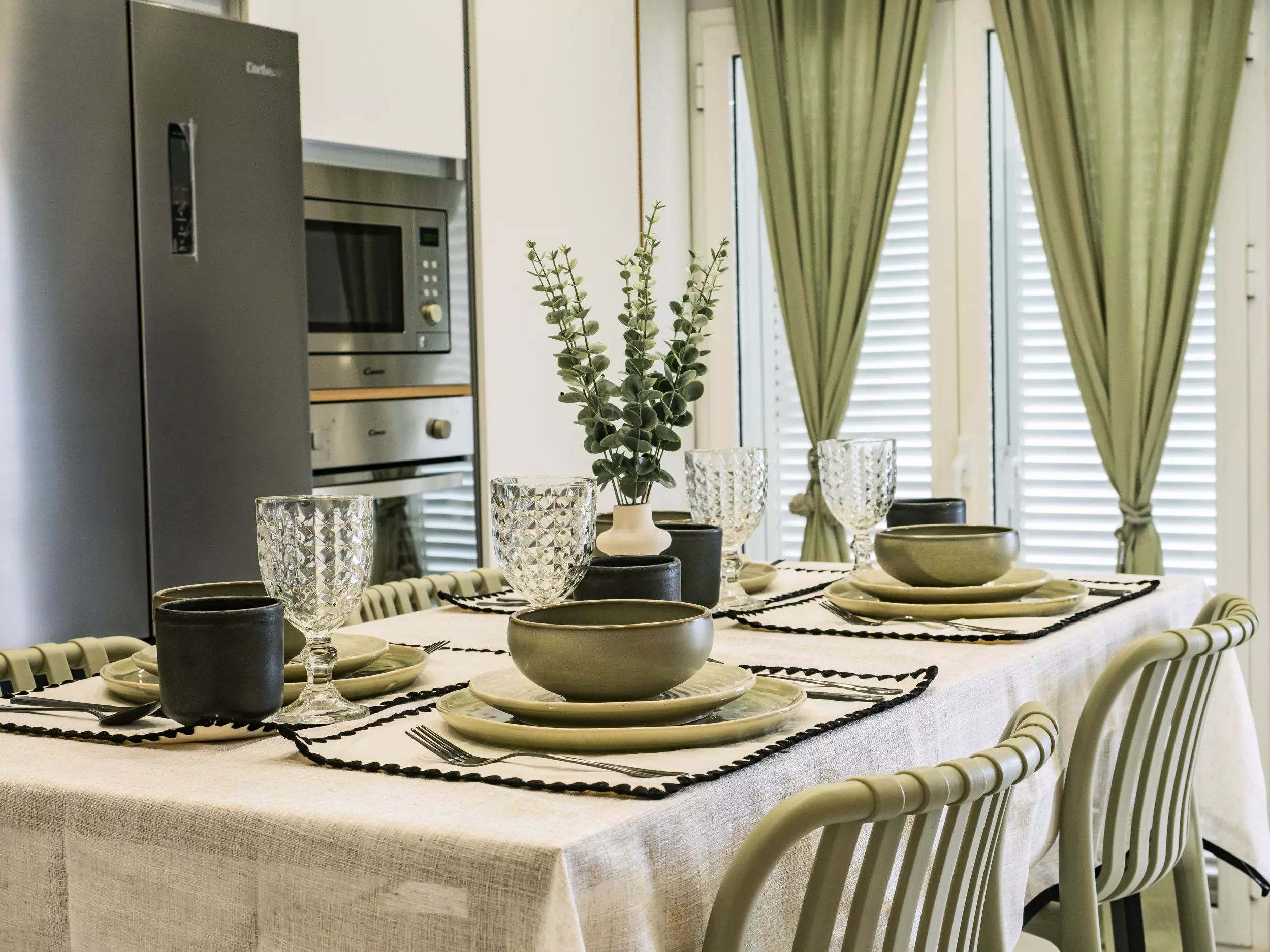 Le logement, avec une décoration moderne et des meubles de haute qualité, dispose de deux chambres : une avec un lit double et l'autre avec un lit double convertible en deux lits individuels, tous deux équipés de la climatisation et d'un espace pour les bagages, garantissant un repos confortable. L'espace salon-salle à manger intègre une cuisine américaine entièrement équipée avec des appareils électroménagers de dernière génération (lave-linge, lave-vaisselle, réfrigérateur, four, micro-ondes, entre autres), conçue pour offrir confort et fonctionnalité. De plus, vous pourrez vous détendre sur une petite terrasse idéale pour profiter d'un café matinal ou d'une lecture tranquille. ??