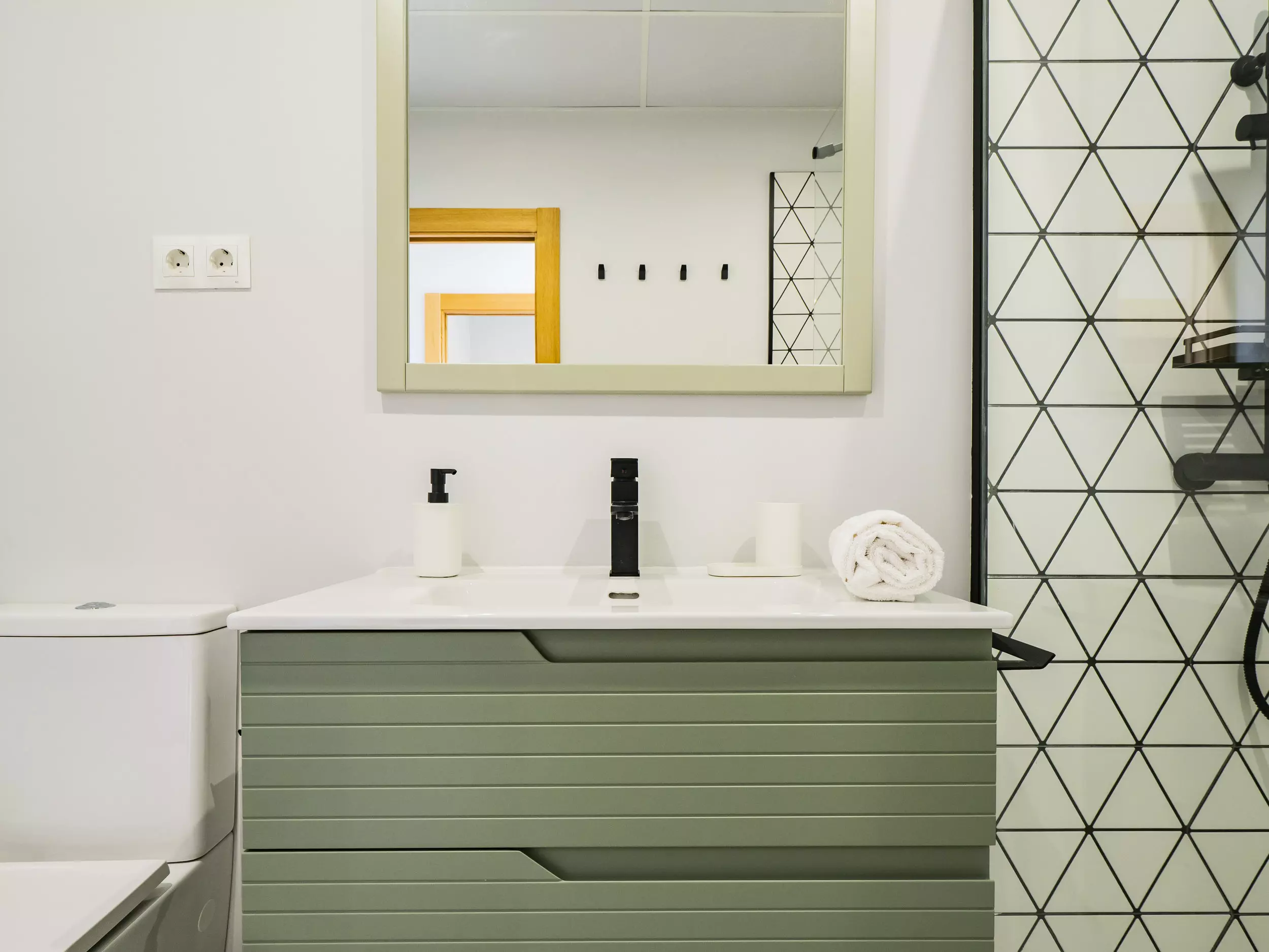 La salle de bain est spacieuse et moderne, avec un receveur de douche pour votre confort. Parmi les commodités supplémentaires de l'appartement, on peut citer l'accès internet wifi, le chauffage par pompe à chaleur, la piscine communautaire, le parking extérieur dans le même bâtiment et l'ascenseur, facilitant votre séjour. Vous disposez également d'une télévision pour les moments de loisirs. ??
