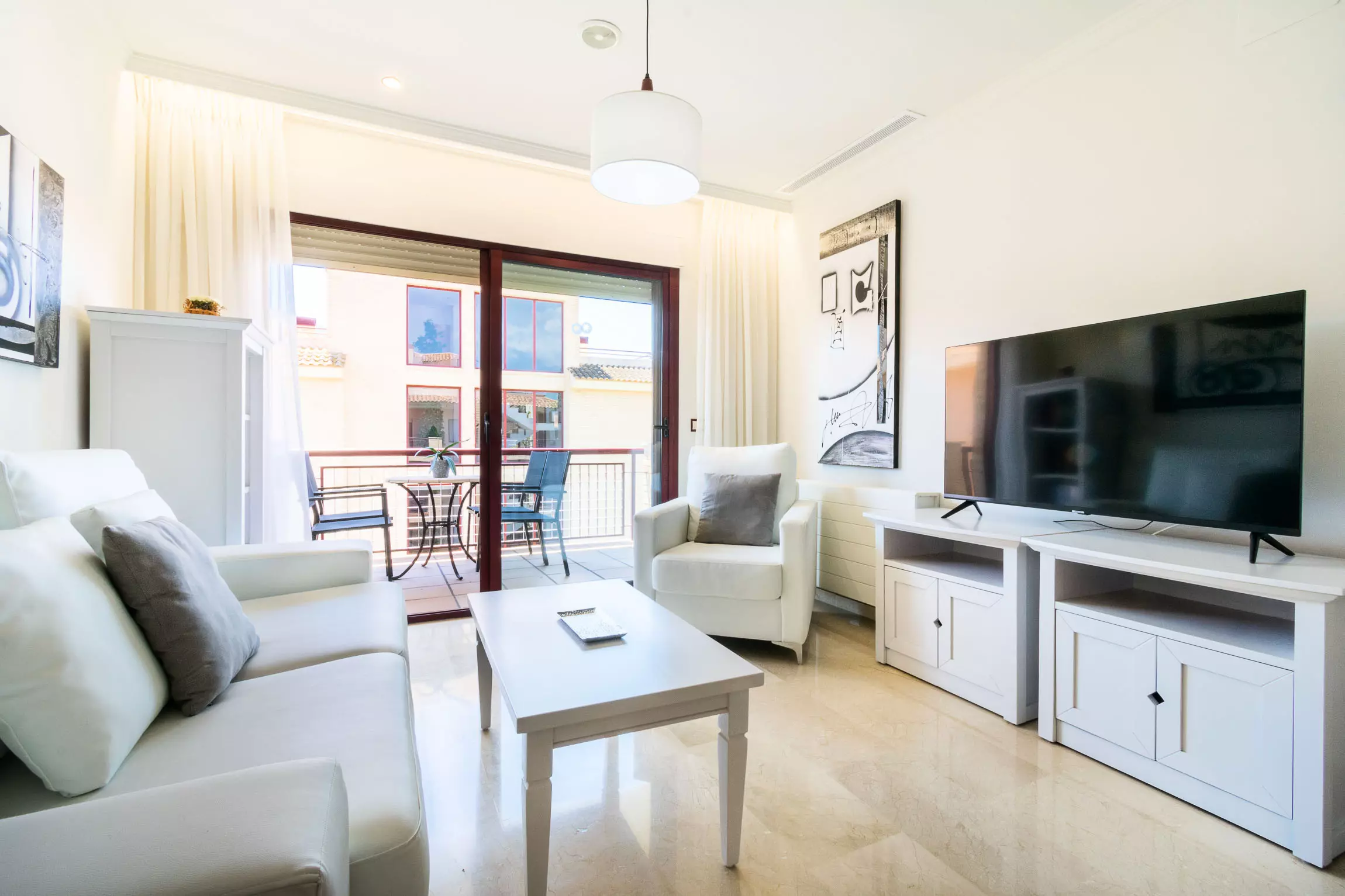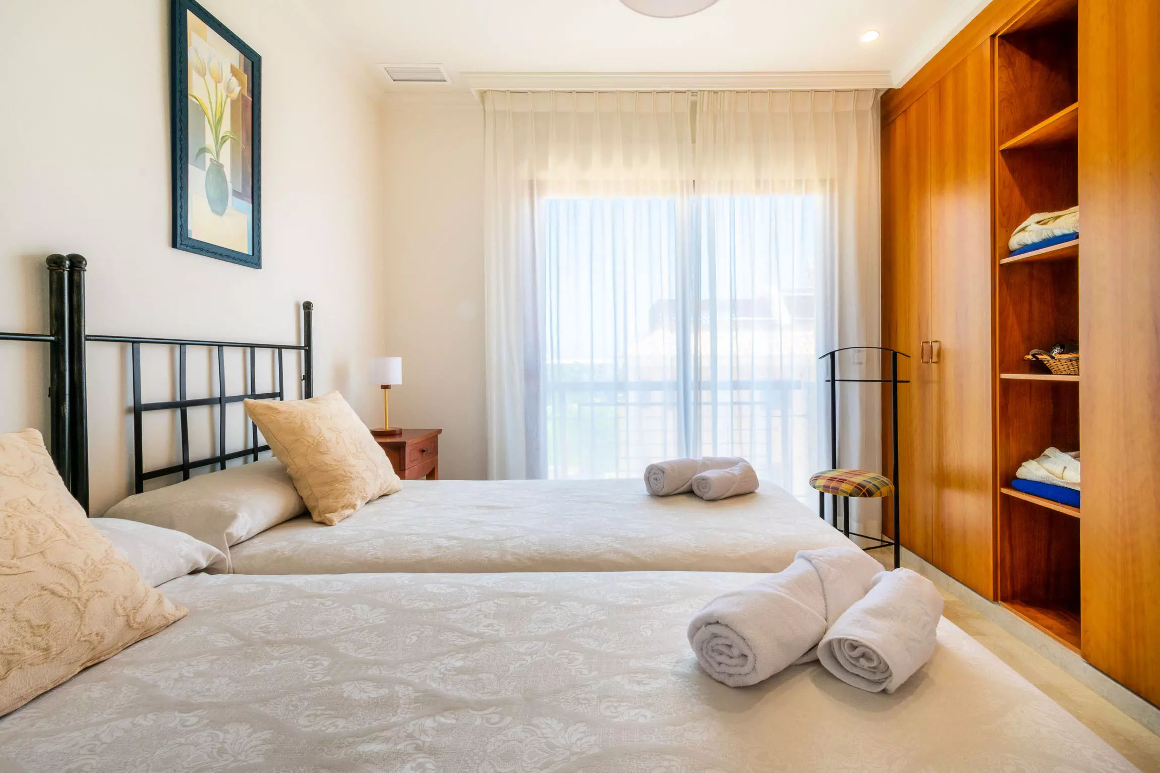 Elle dispose de ascenseur, mobilier de jardin, terrasse, lave-linge, fer à repasser, coffre-fort, accès internet (wifi), sèche-cheveux, chaudière au gaz individuelle, climatisation, piscine collective, garage même bâtiment, 3 Télévisions, tv satellite (Langues: Anglais, Allemand, Hollandais, Français, Norvégien).