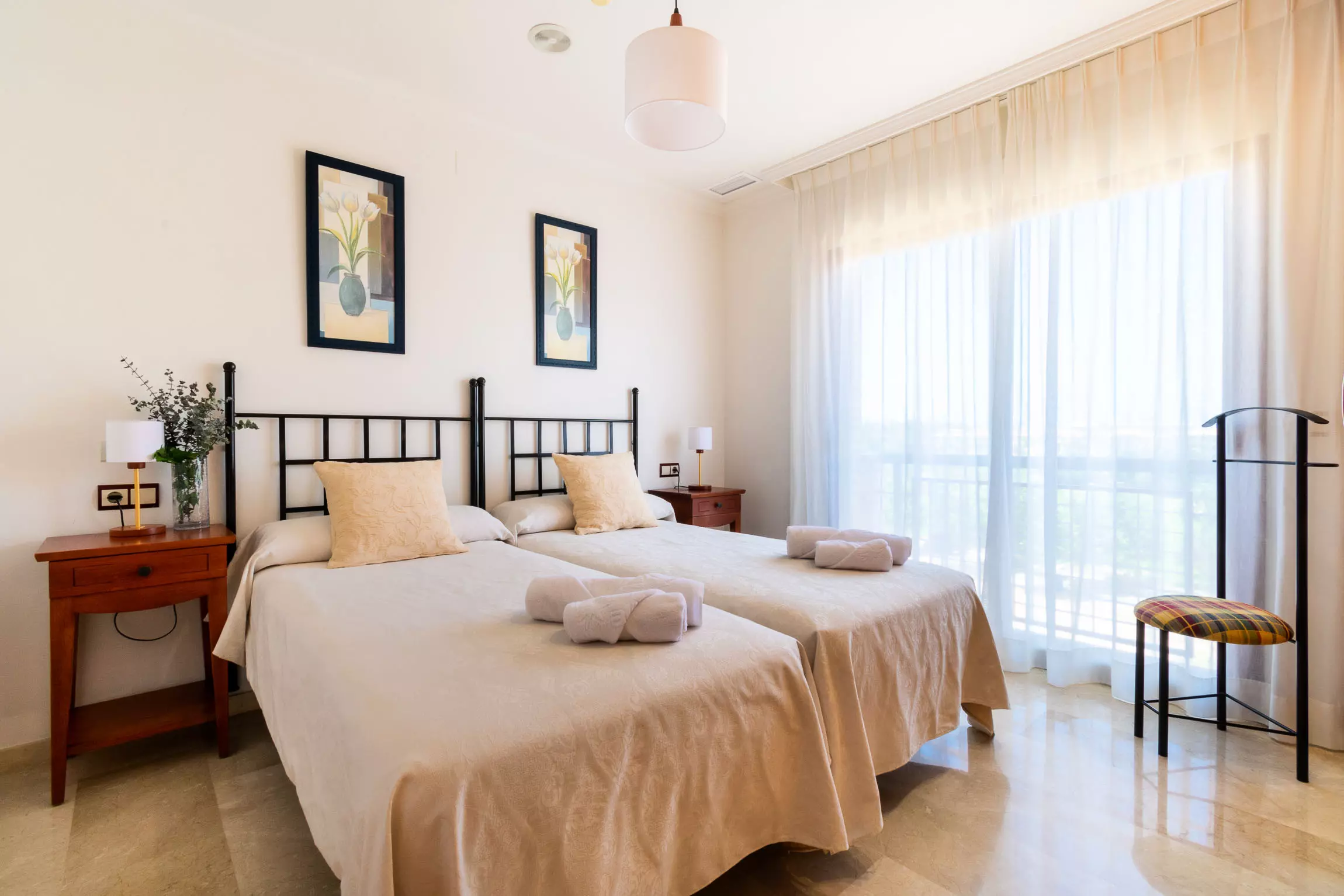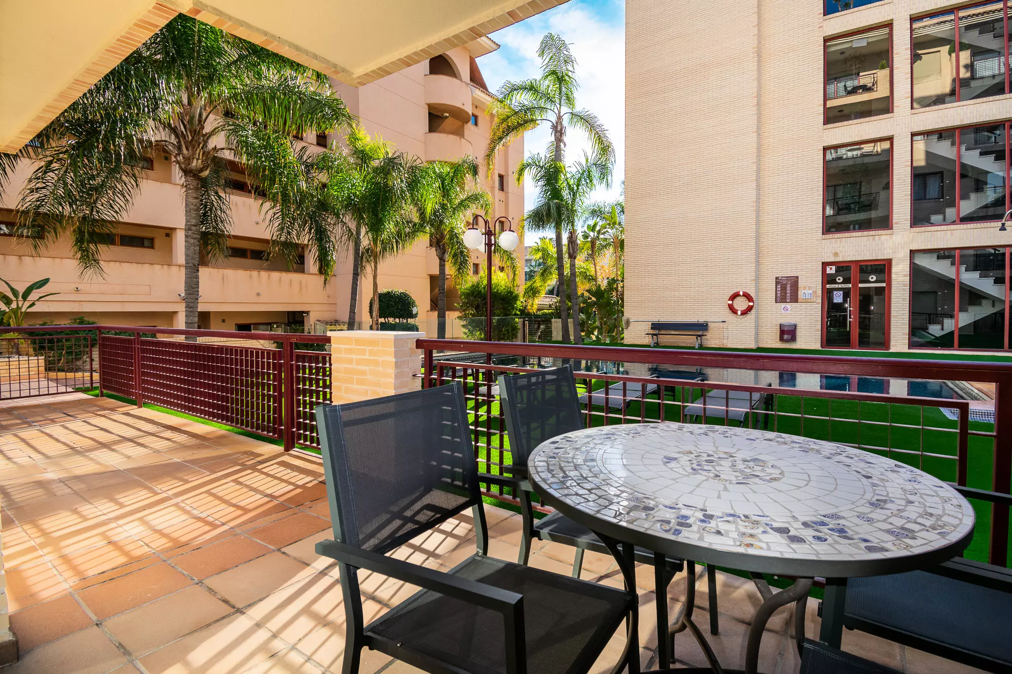 Elle dispose de ascenseur, mobilier de jardin, terrasse, lave-linge, fer à repasser, coffre-fort, accès internet (wifi), sèche-cheveux, chaudière au gaz individuelle, climatisation, piscine collective, garage même bâtiment, 3 Télévisions, tv satellite (Langues: Anglais, Allemand, Hollandais, Français, Norvégien).