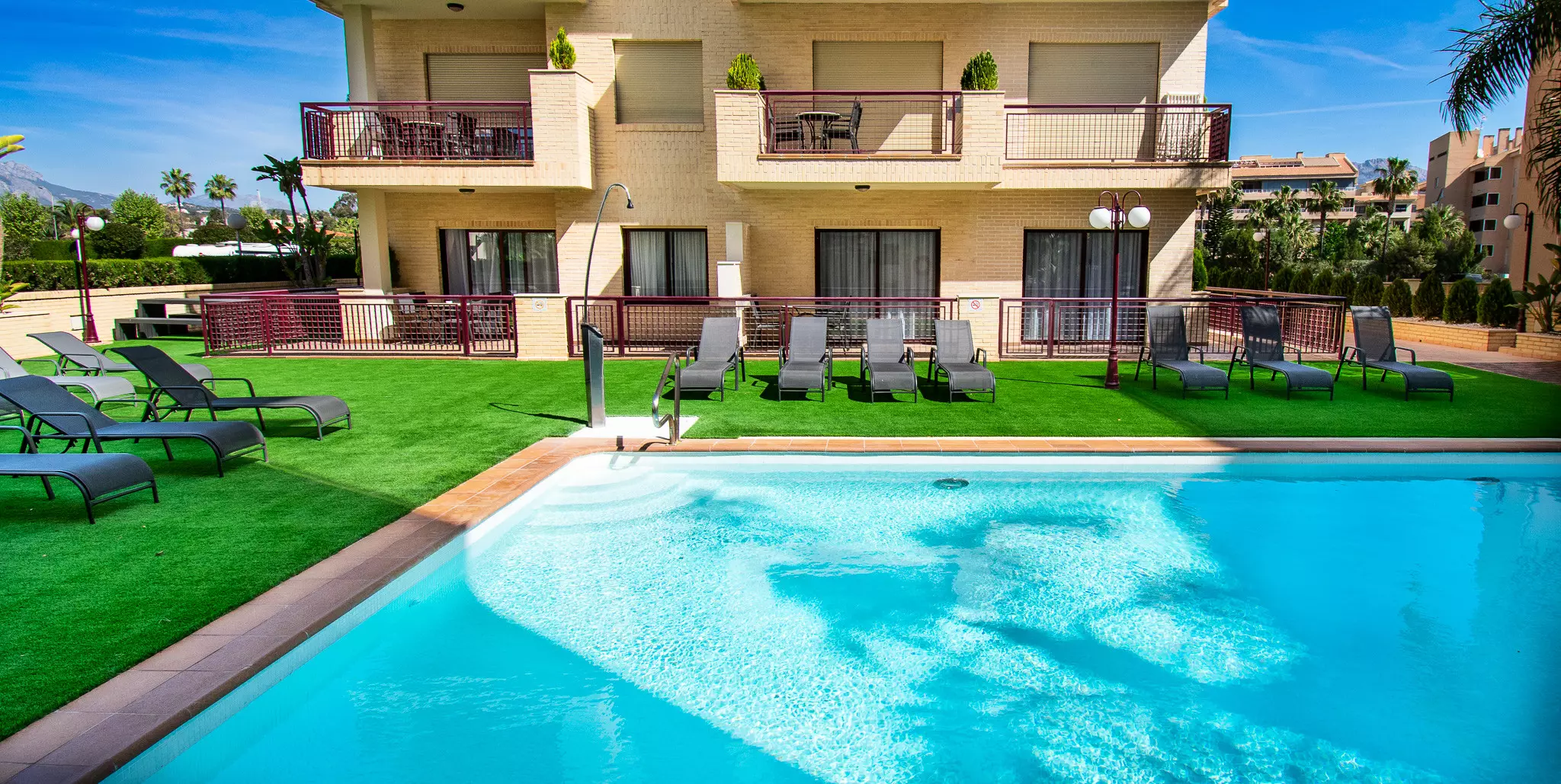 Logement de 125 m² confortable et de construction récente, avec vue sur la piscine.