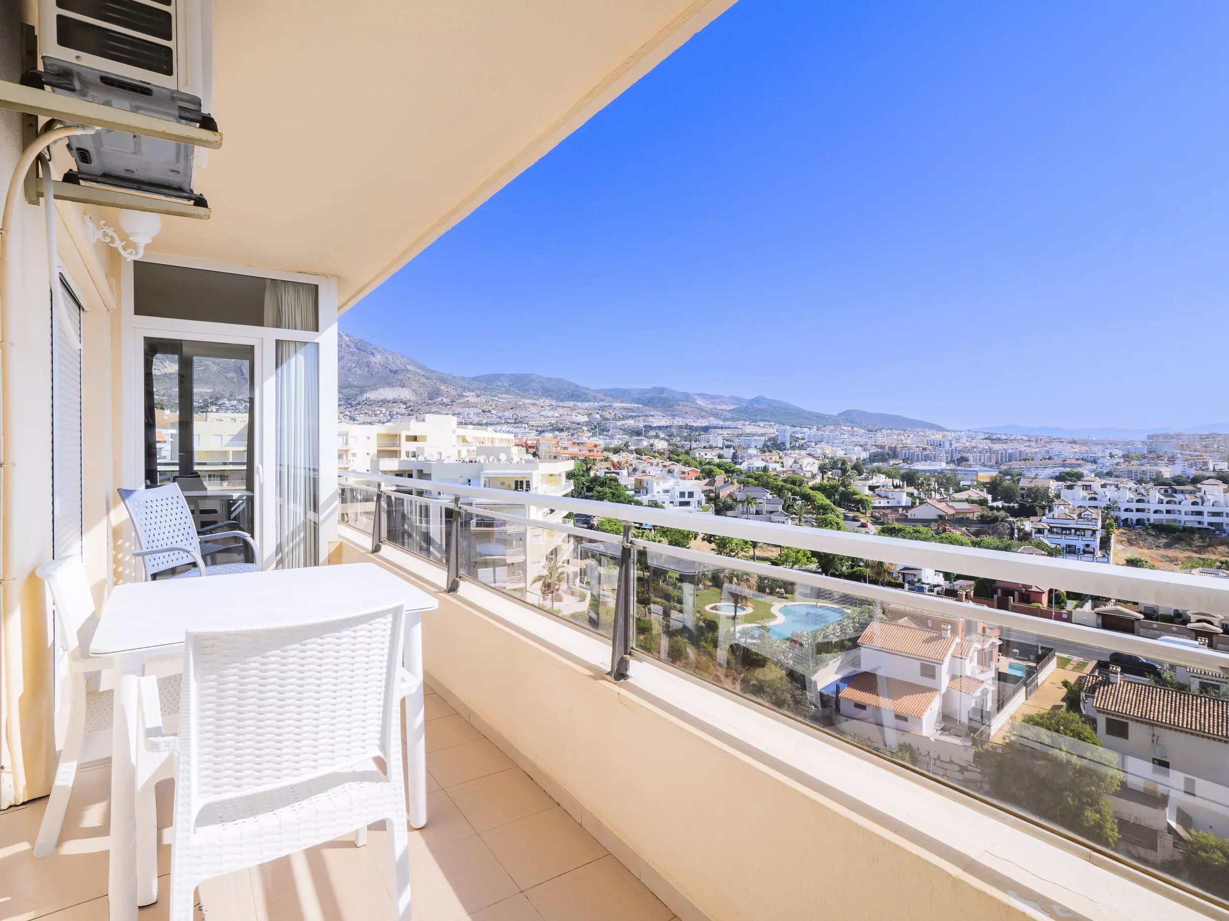 Appartement moderne à Benalmádena avec piscine communautaire, vue sur mer, terrasse, climatisation et capacité pour 5 personnes, à proximité de la plage, du golf et de tous les services