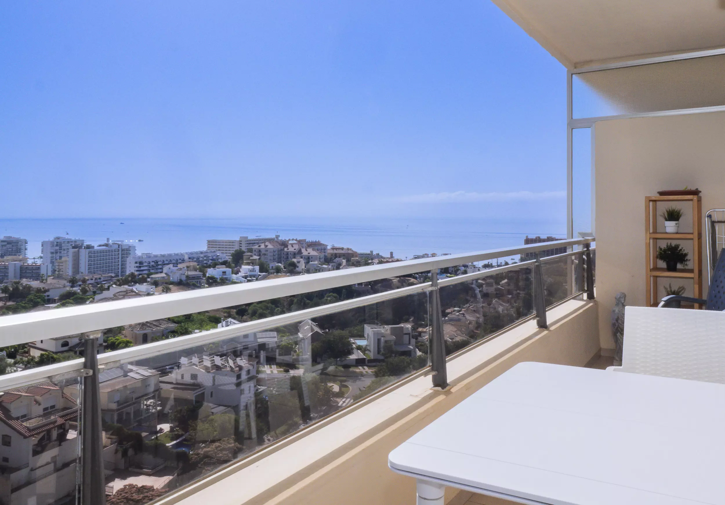 Situé au neuvième étage, il offre une vue panoramique impressionnante sur la côte et la montagne. À seulement quelques minutes du Golf Torrequebrada et des plages de Torremuelle et Bil Bil, il est parfait pour les amateurs de mer, de golf et de détente.