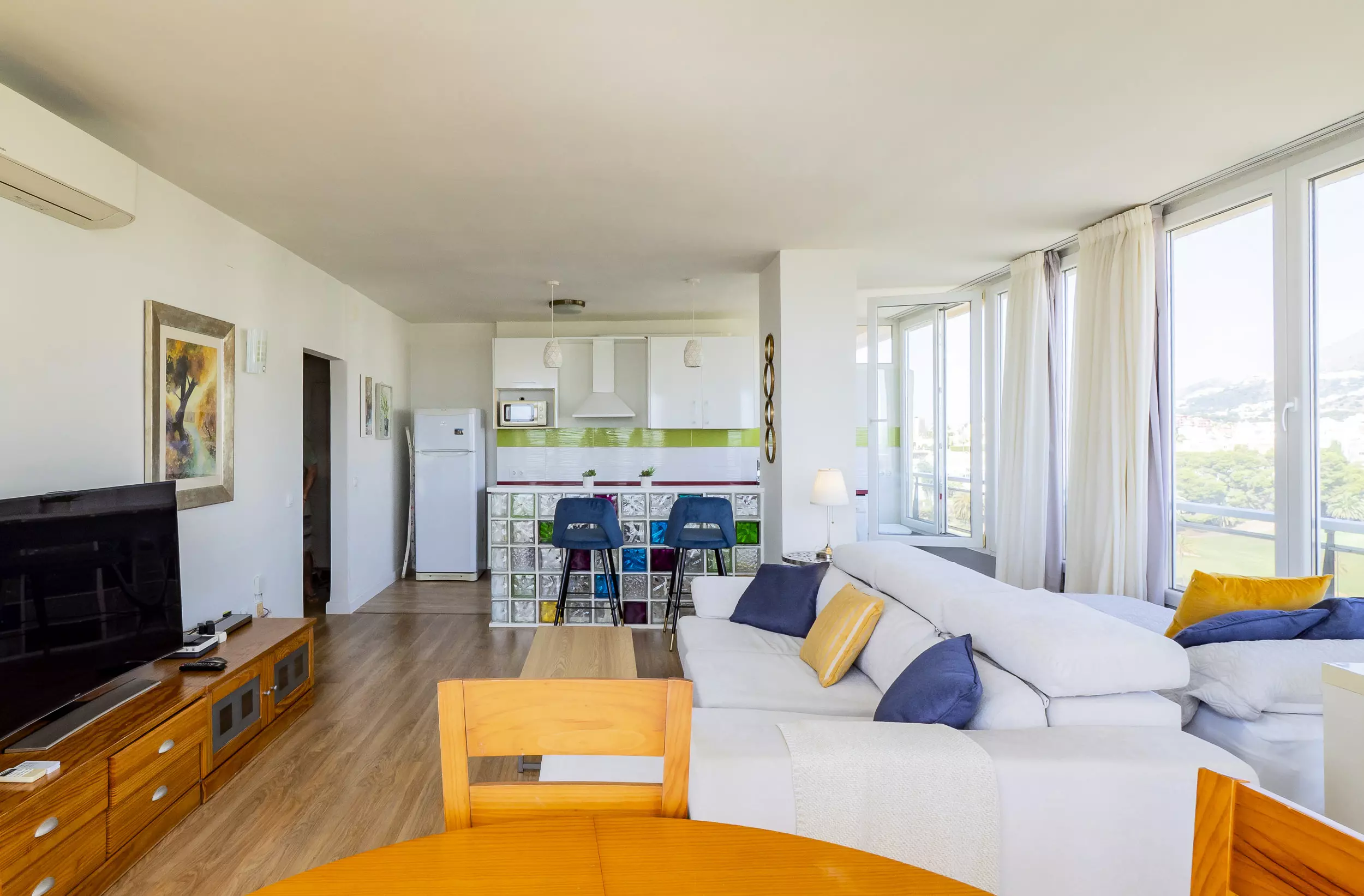 Inclut : climatisation dans le salon et dans l'une des deux chambres, wifi, ascenseur, ventilateur, TV et place de parking non couverte.