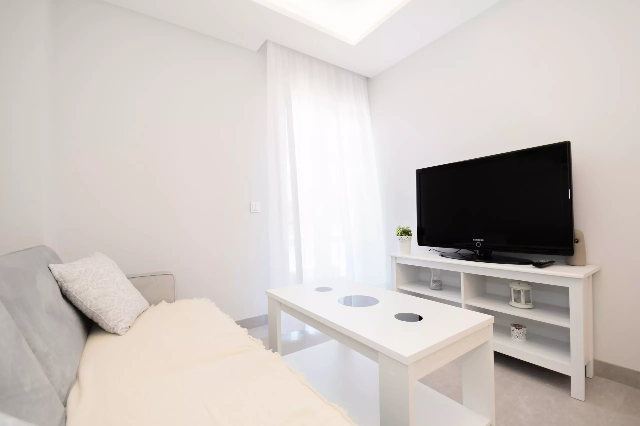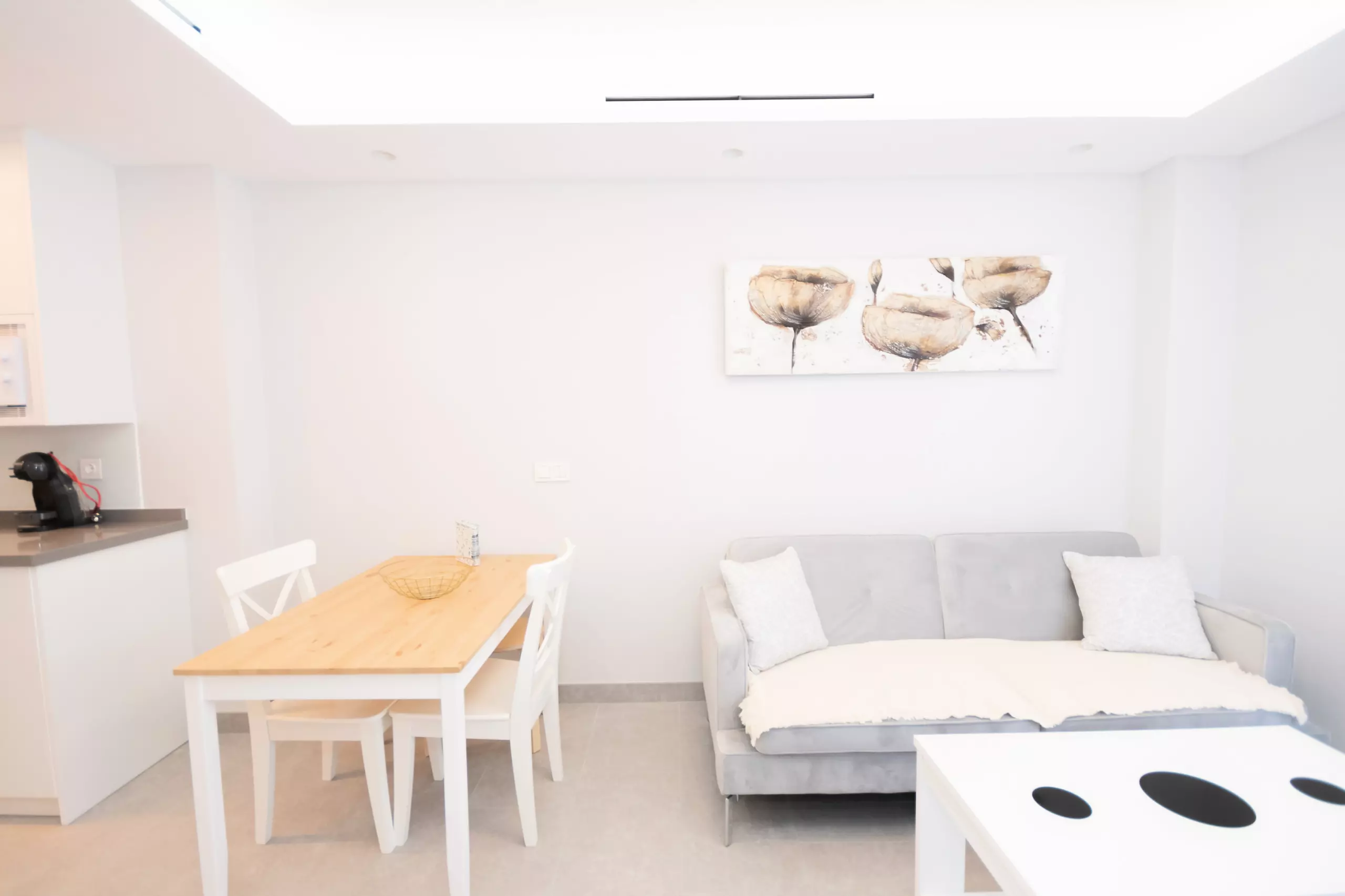 L'appartement est meublé avec style et dispose d'une cuisine américaine entièrement équipée pour préparer vos repas ?, un salon confortable avec TV et WiFi gratuit pour vos moments de détente ?, et un air conditionné centralisé avec des fenêtres à double vitrage qui garantissent un environnement frais et silencieux ?. La chambre principale offre un lit matrimonial, et le canapé-lit du salon permet d'accueillir plus de personnes, idéal pour les groupes ou les familles. La salle de bain complète avec douche ajoute de la fonctionnalité à votre séjour ?.