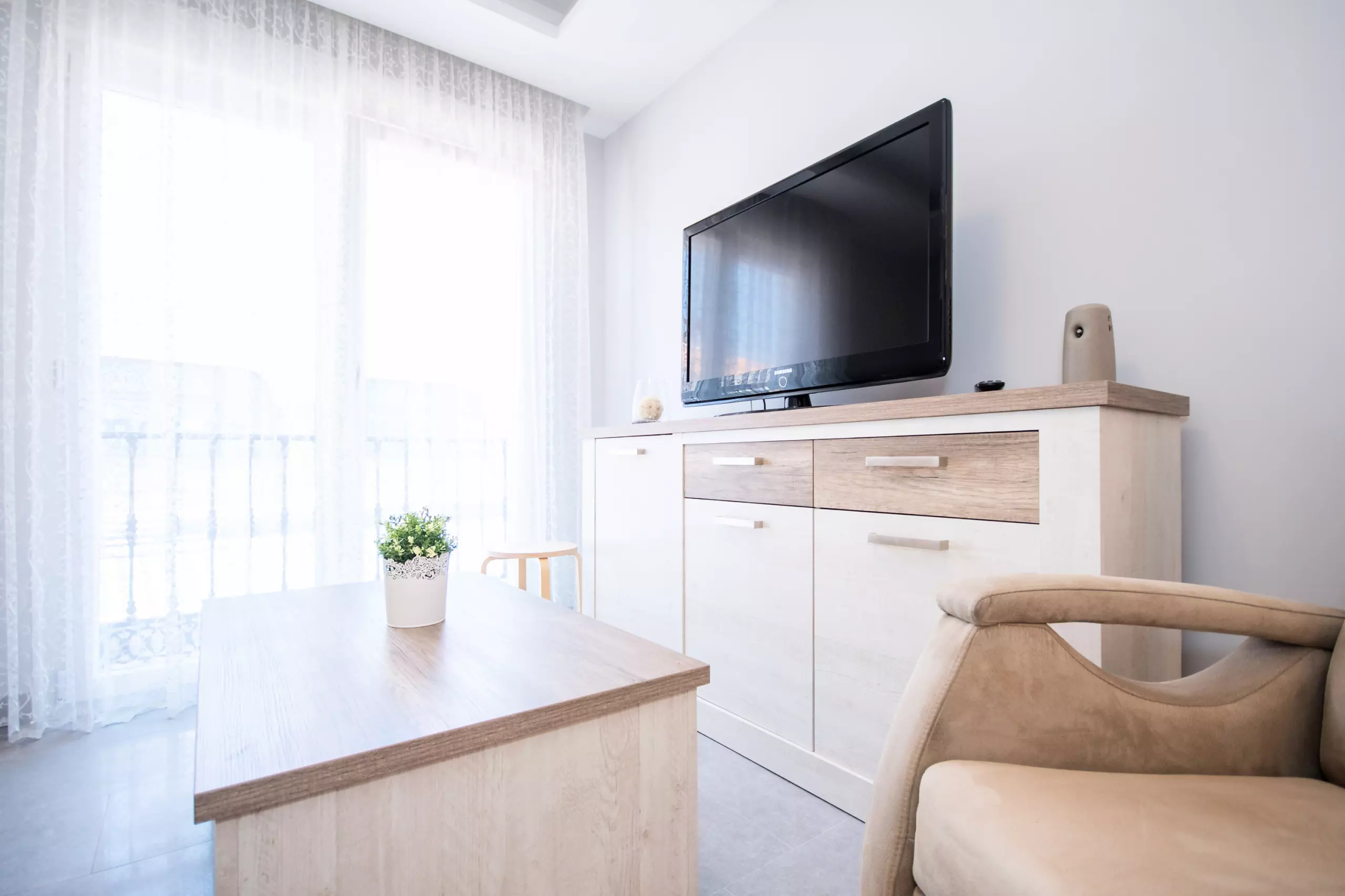 L'appartement, rénové en 2019, offre une cuisine américaine entièrement équipée pour préparer vos plats préférés ?, un salon accueillant avec Smart TV et WiFi gratuit pour vous détendre après une journée remplie d'aventures ?, et un air conditionné centralisé avec des fenêtres à double vitrage pour une ambiance fraîche et calme ?. La distribution comprend une chambre principale avec un lit de couple et une chambre secondaire avec un lit gigogne ?.