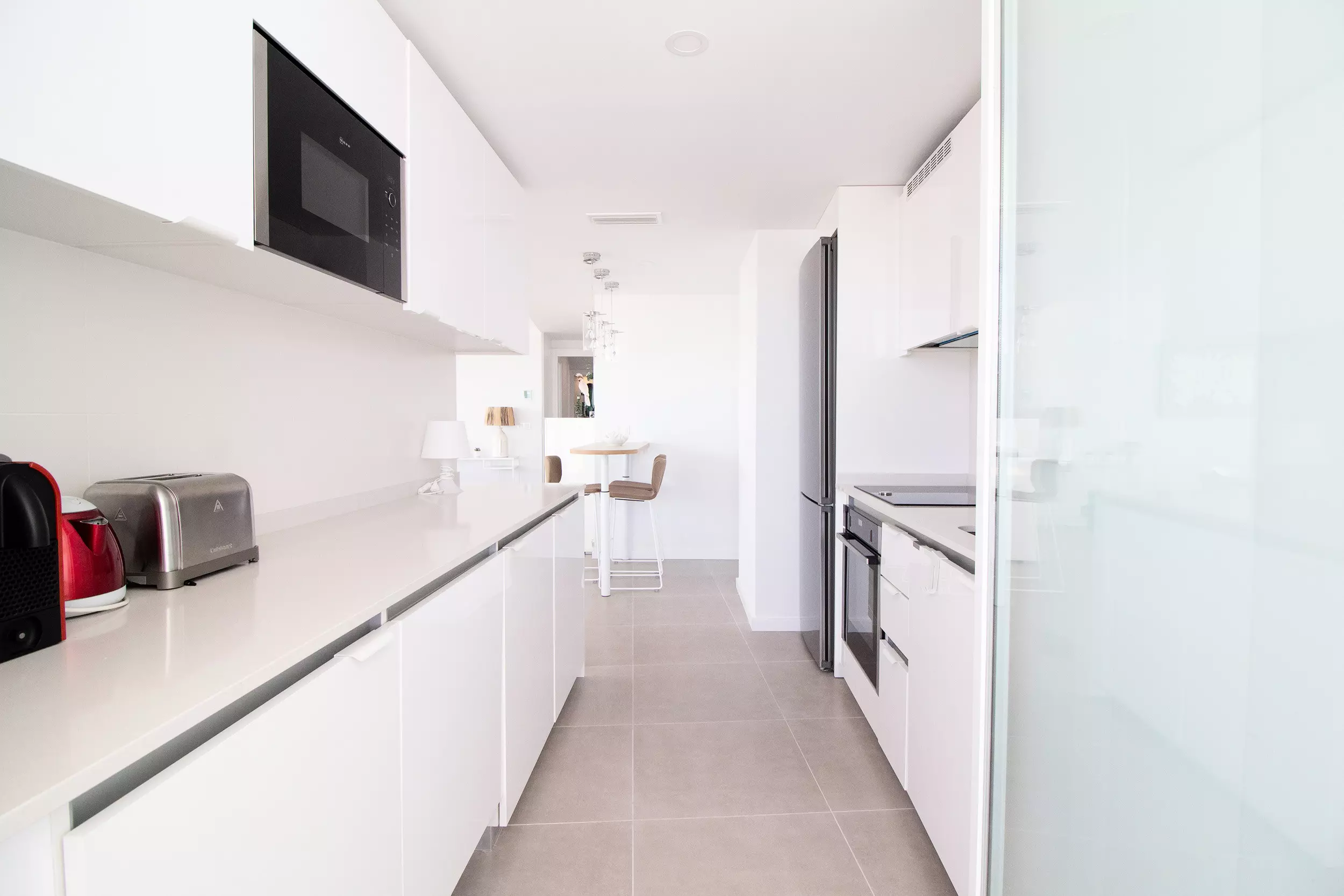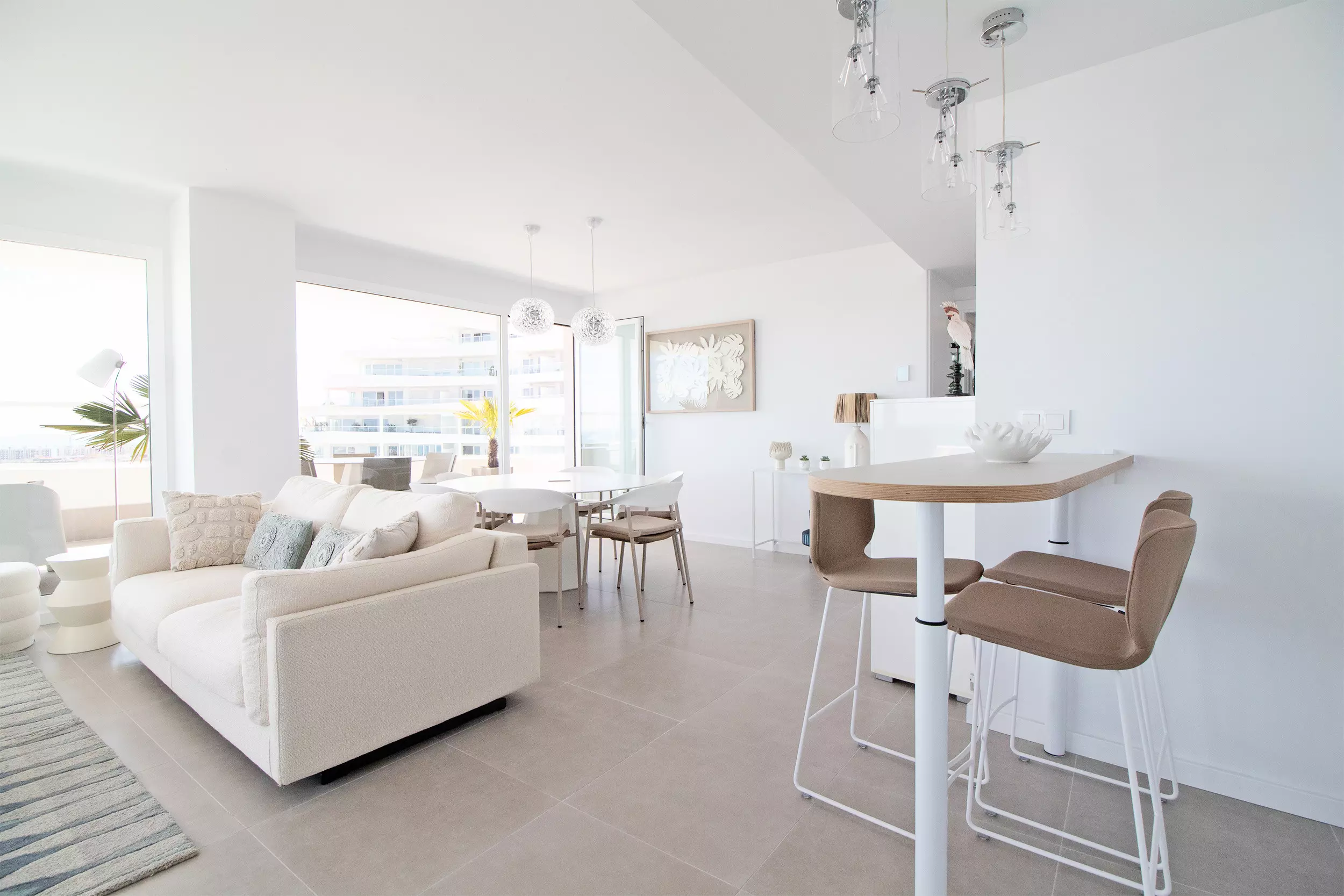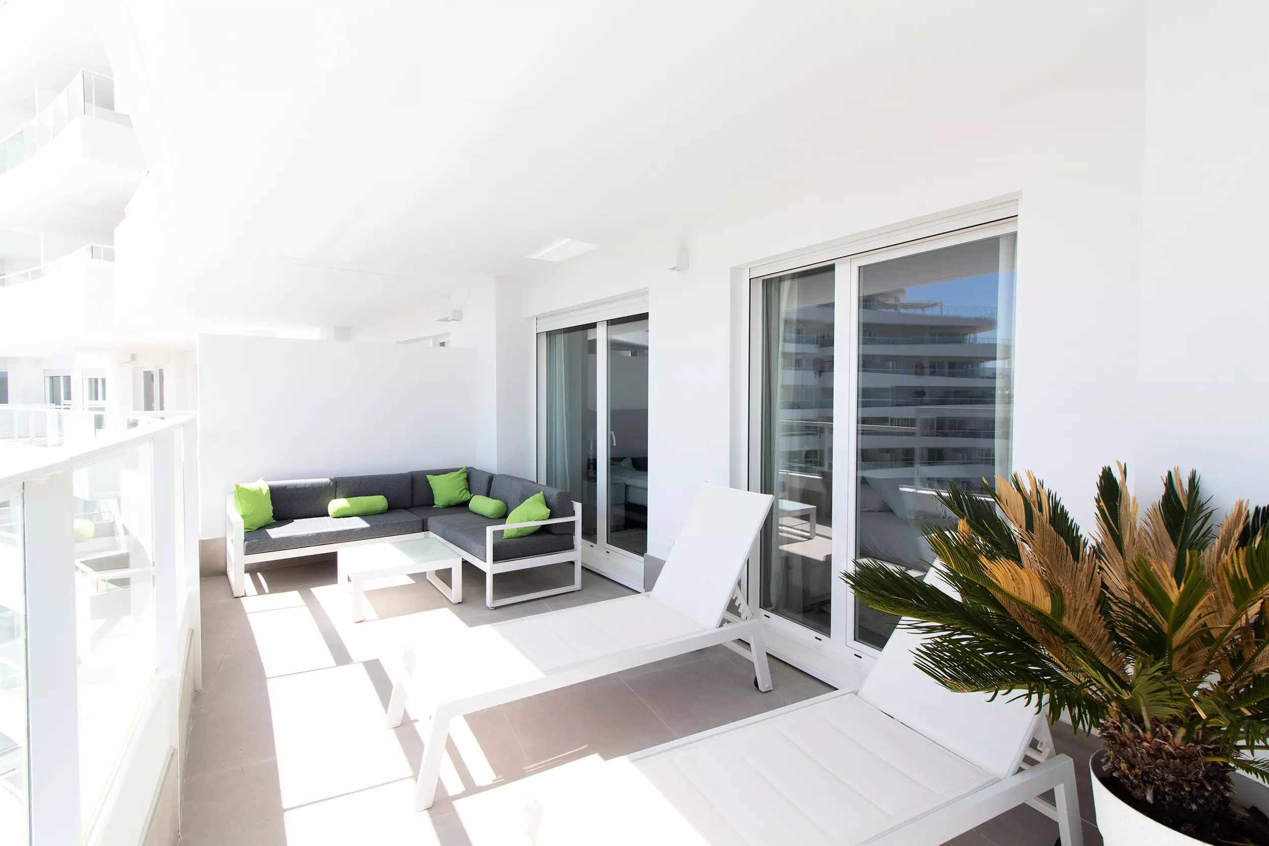 L'appartement comprend 3 chambres, 2 salles de bains et des toilettes. En outre, il dispose d'un salon avec de grandes fenêtres qui donnent accès à la terrasse. La terrasse est entièrement équipée et constitue l'endroit idéal pour profiter de la vie en famille ou entre amis.