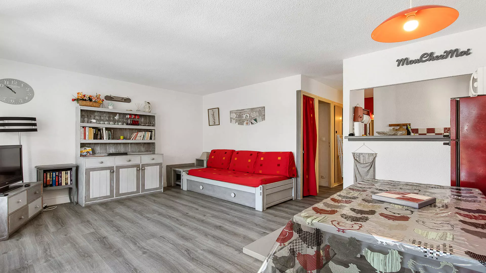 - D'un séjour avec canapé-lit gigogne et une télévision