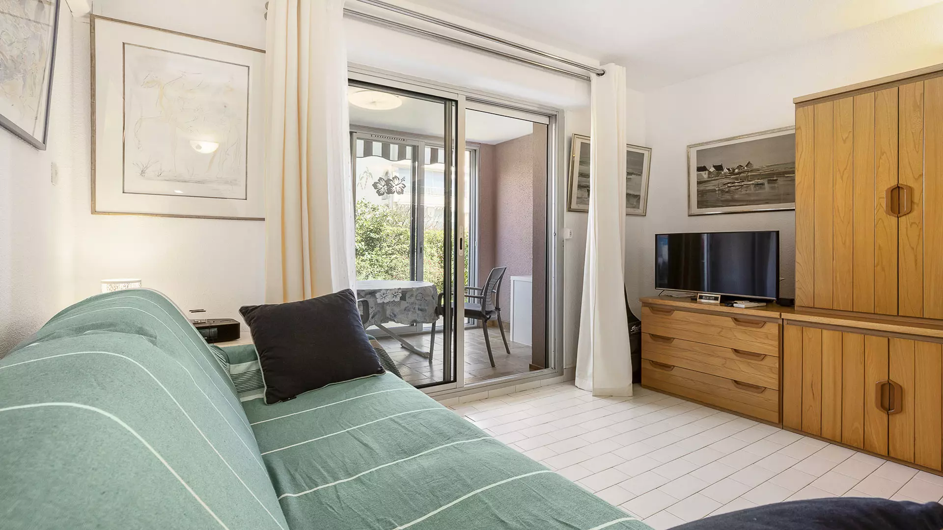 - D'un séjour avec clic clac (1x2 pers) et d'une télévision ;