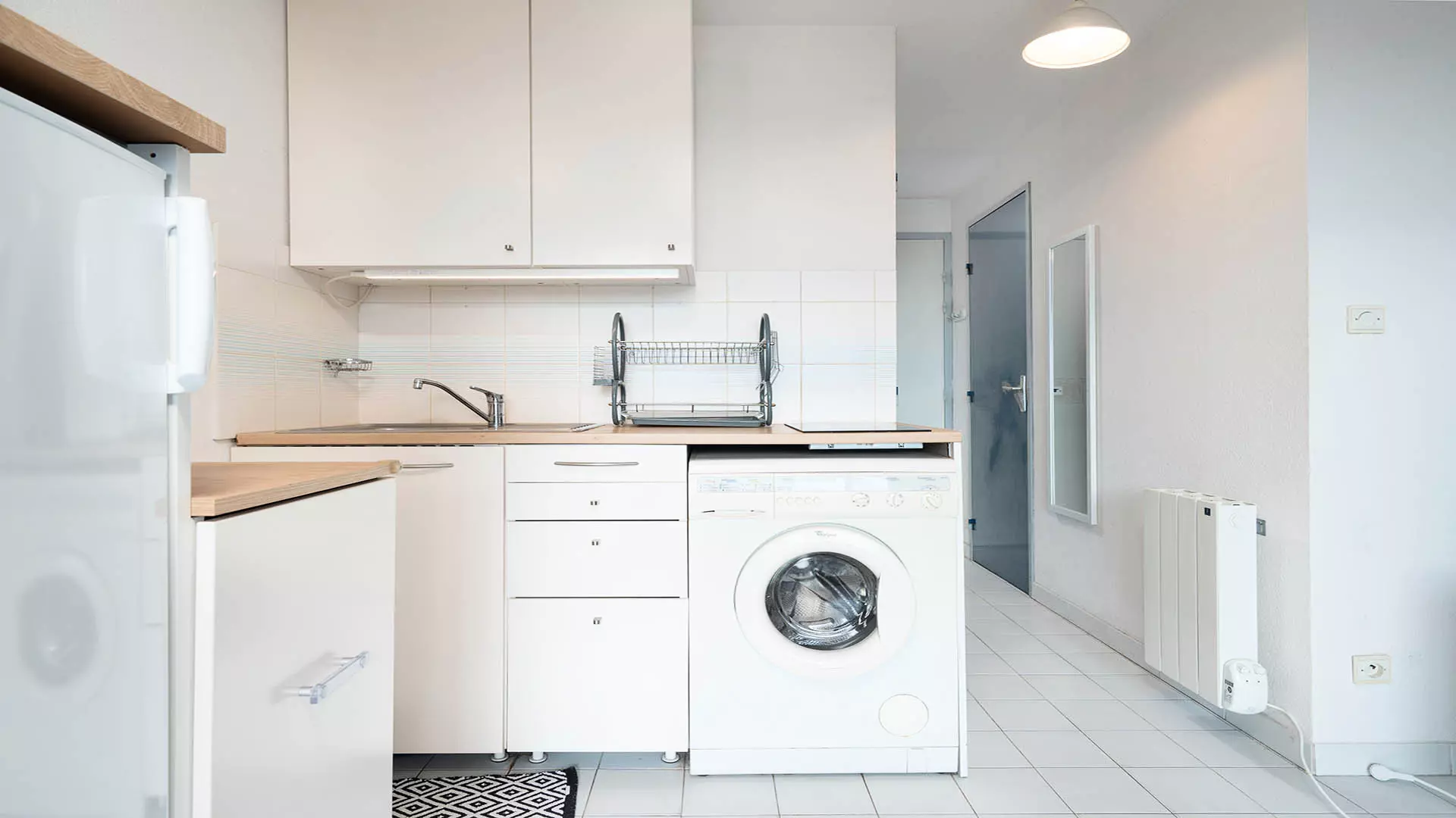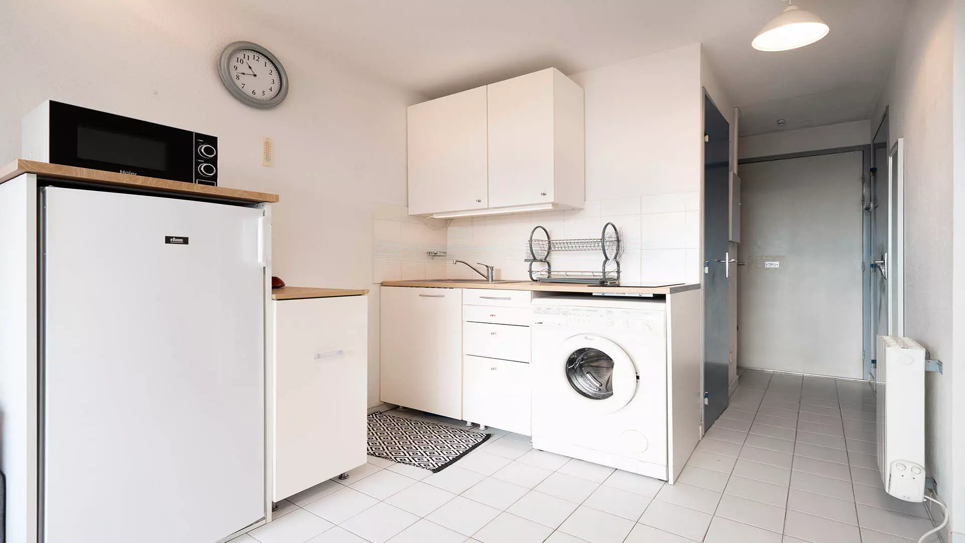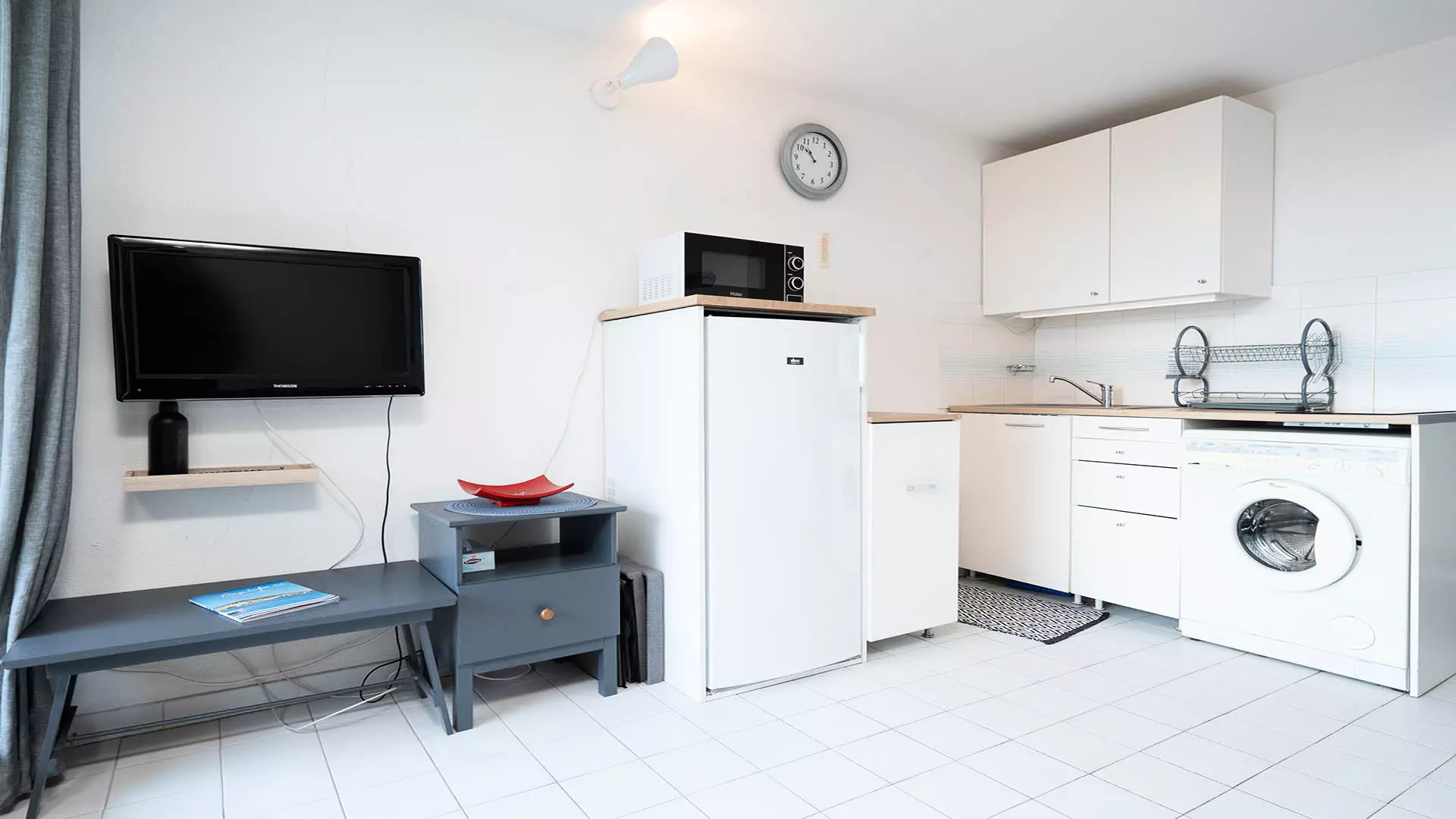 Cuisine : Réfrigérateur, congélateur, micro-ondes, vaisselle, couverts, ustensiles de cuisine, bouilloire, grille-pain et une cafetière à dosette SENSEO pour bien démarrer la journée.