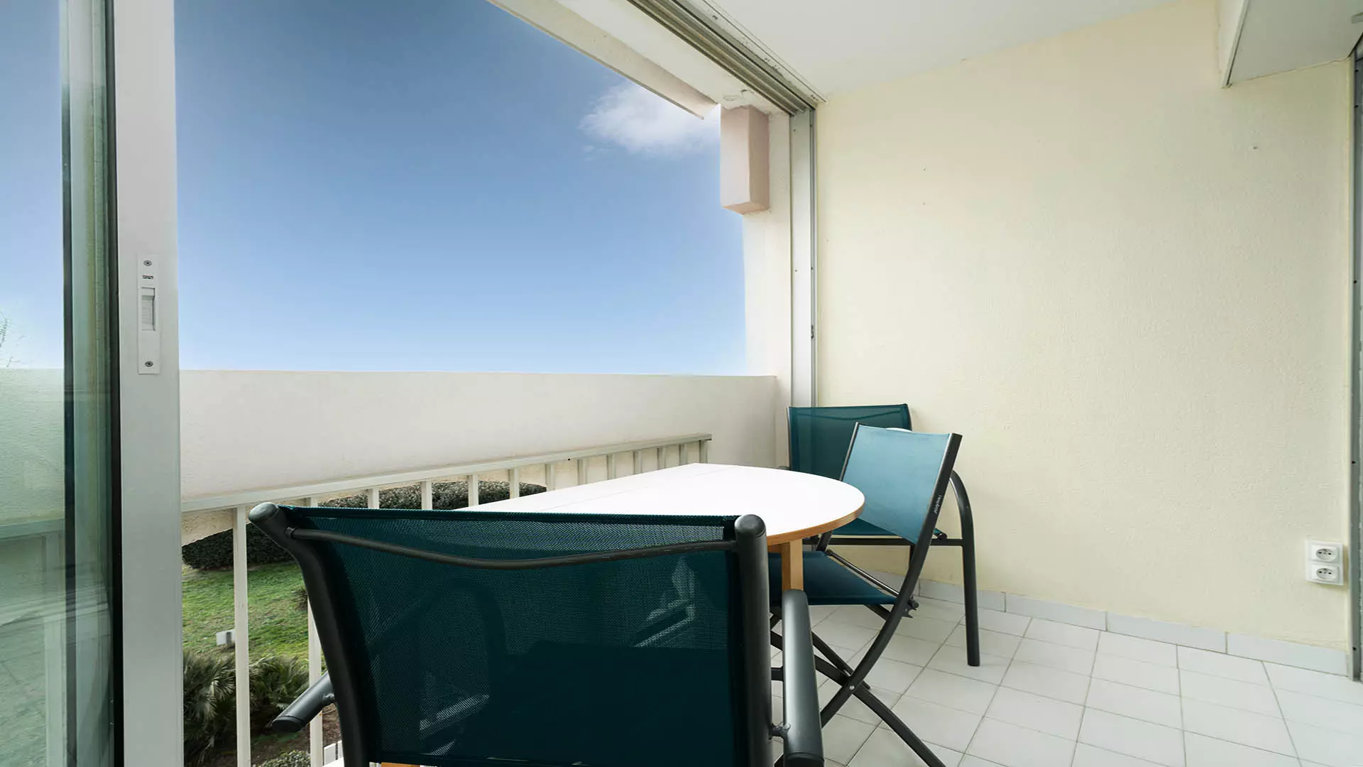 Loggia : Espace extérieur de 6 m² avec mobilier de jardin pour profiter du soleil et de la brise marine.