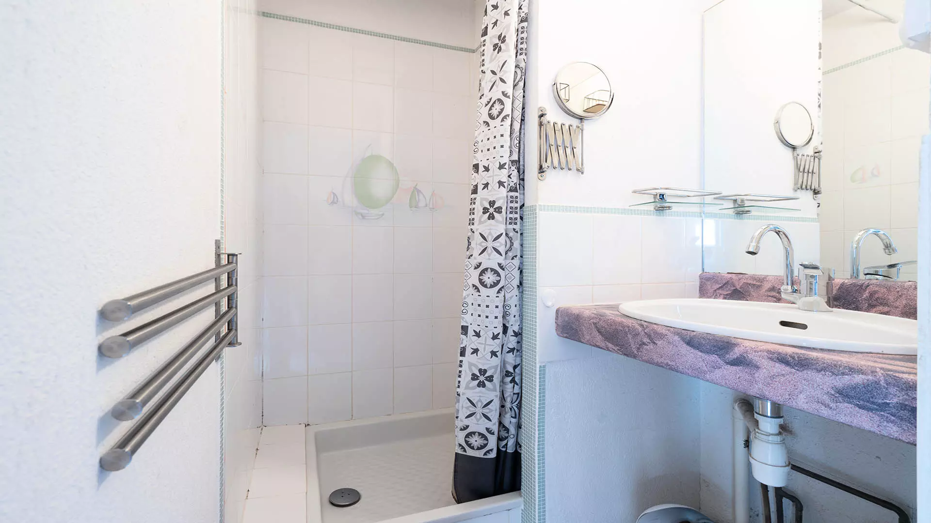 Salle de bain : Douche, porte-serviette, sèche-cheveux et WC indépendants pour plus de confort.