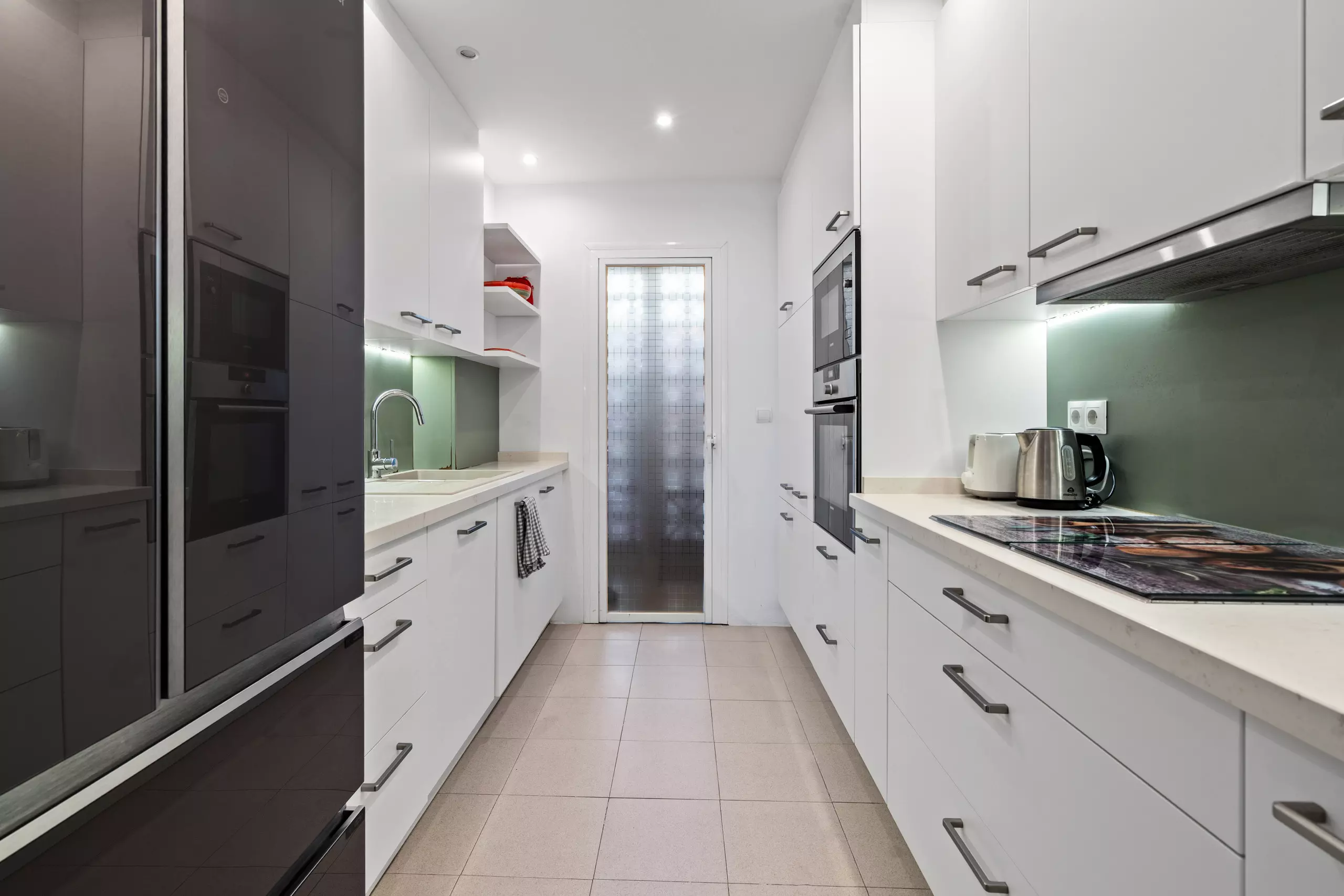 La cuisine, Électrique, est équipée avec réfrigérateur, micro-ondes, four, congélateur, lave-vaisselle, vaisselle/couverts, ustensiles/cuisine, cafetière, grille pain et bouilloire.