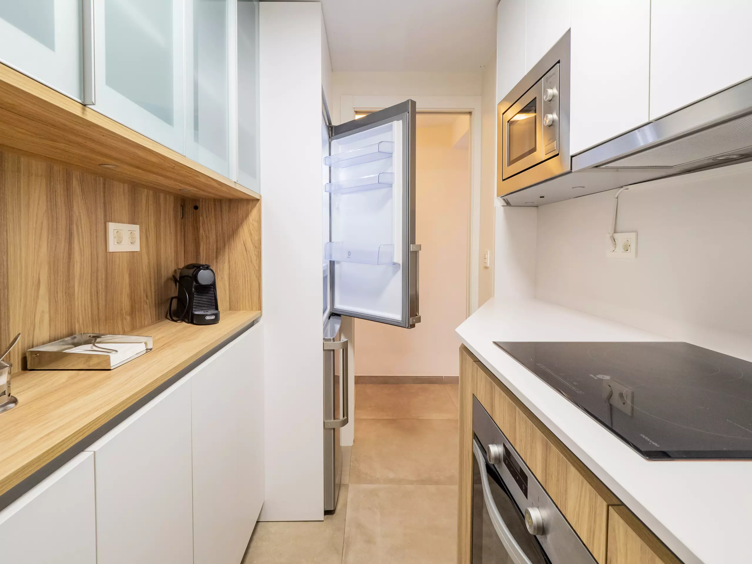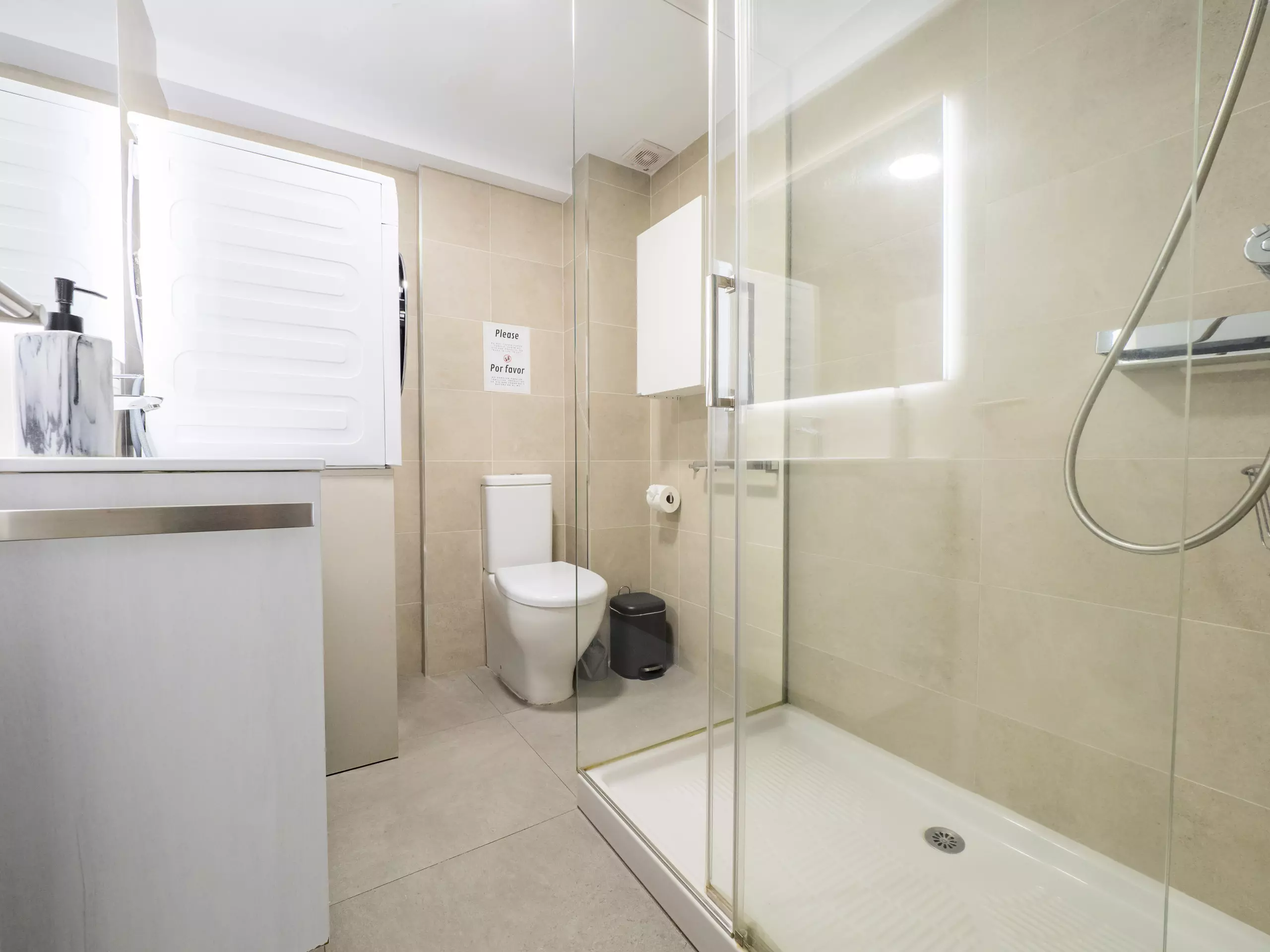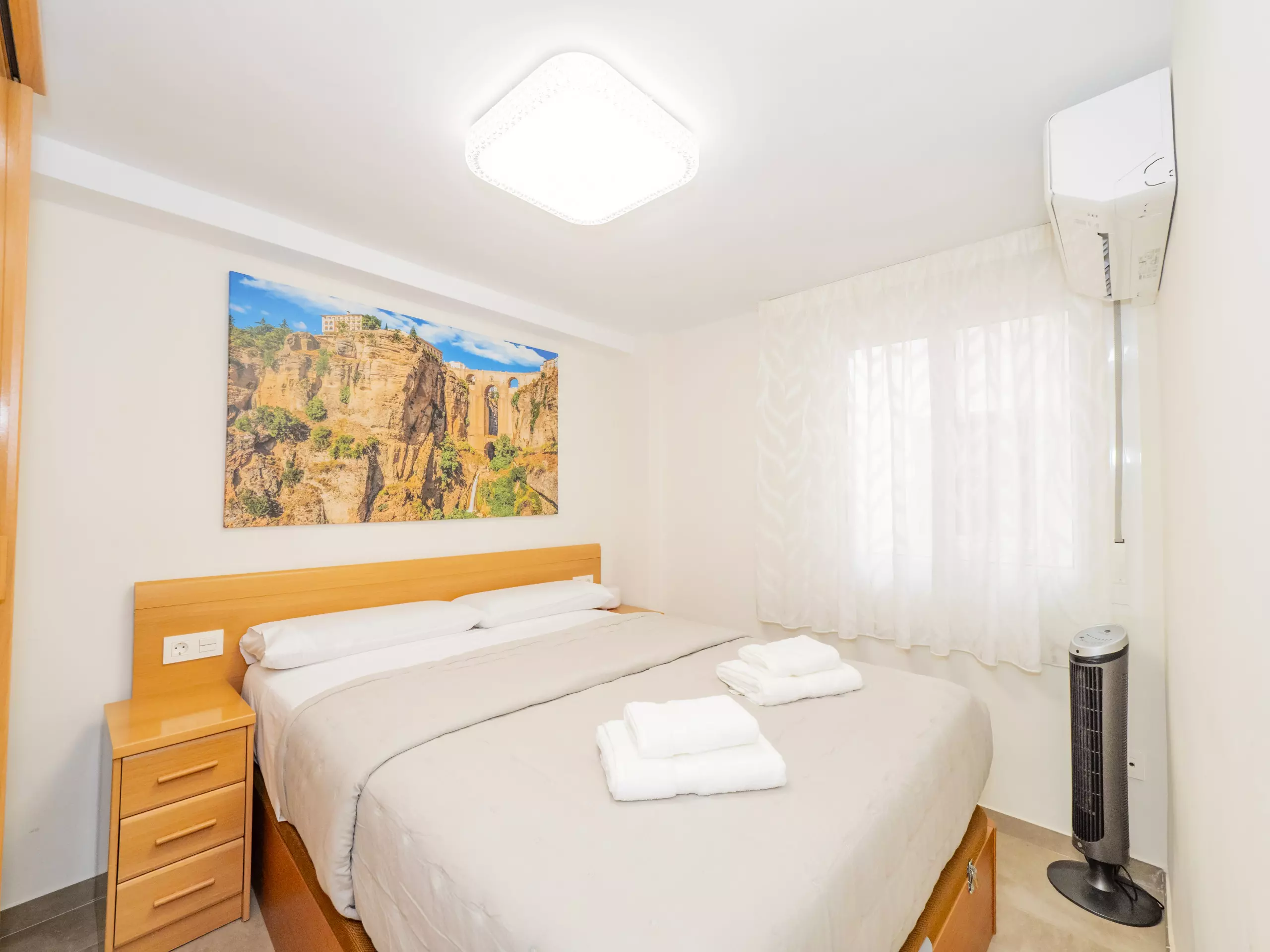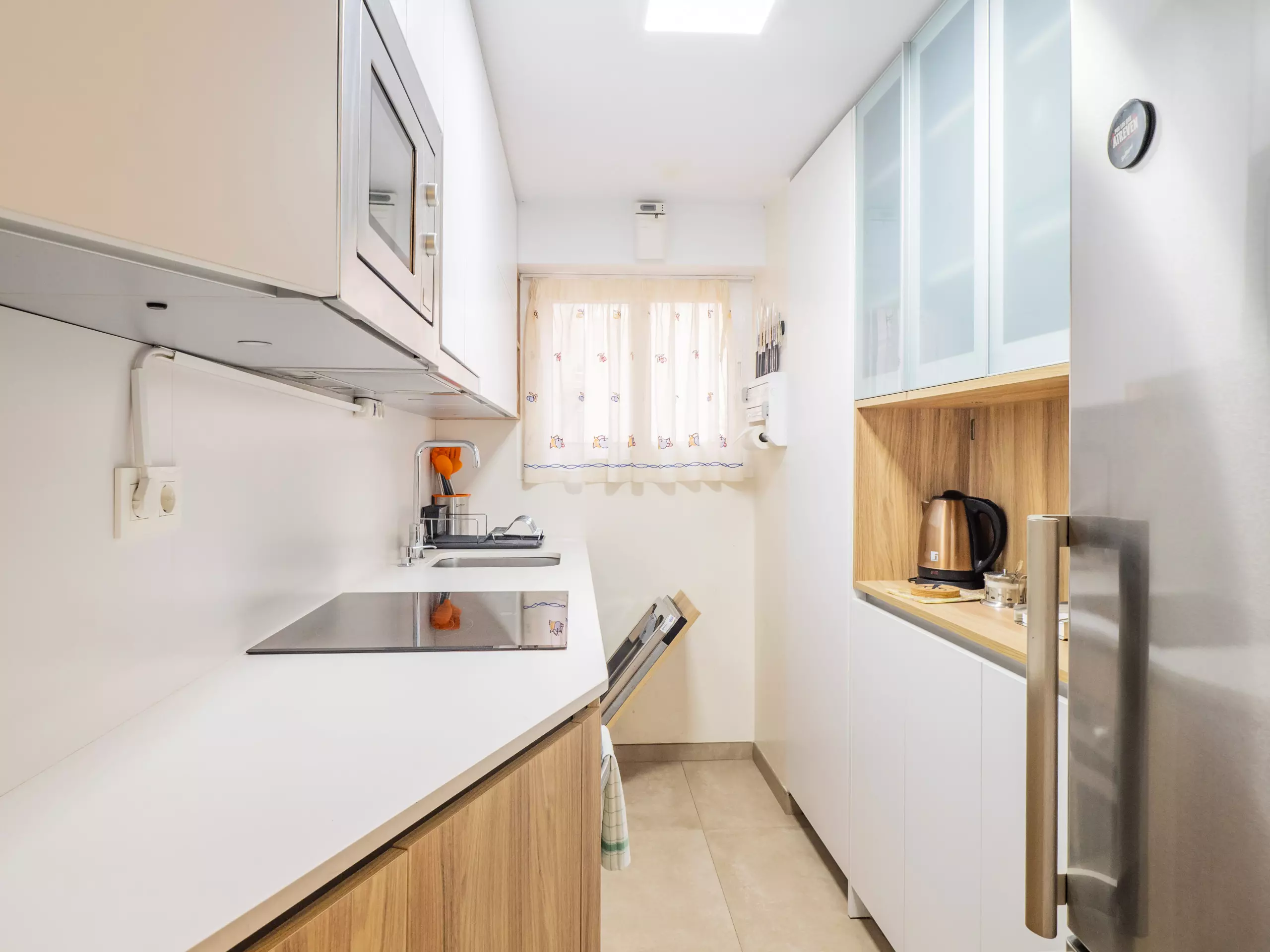 L'appartement est équipé de tous les conforts pour un séjour agréable : cuisine indépendante avec des appareils électroménagers modernes (réfrigérateur, micro-ondes, four, lave-vaisselle, cafetière, grille-pain, presse-agrumes), machine à laver, sèche-linge, fer à repasser, sèche-cheveux, ventilateurs et télévision. De plus, il dispose d'un ascenseur et d'une alarme pour plus de sécurité.
